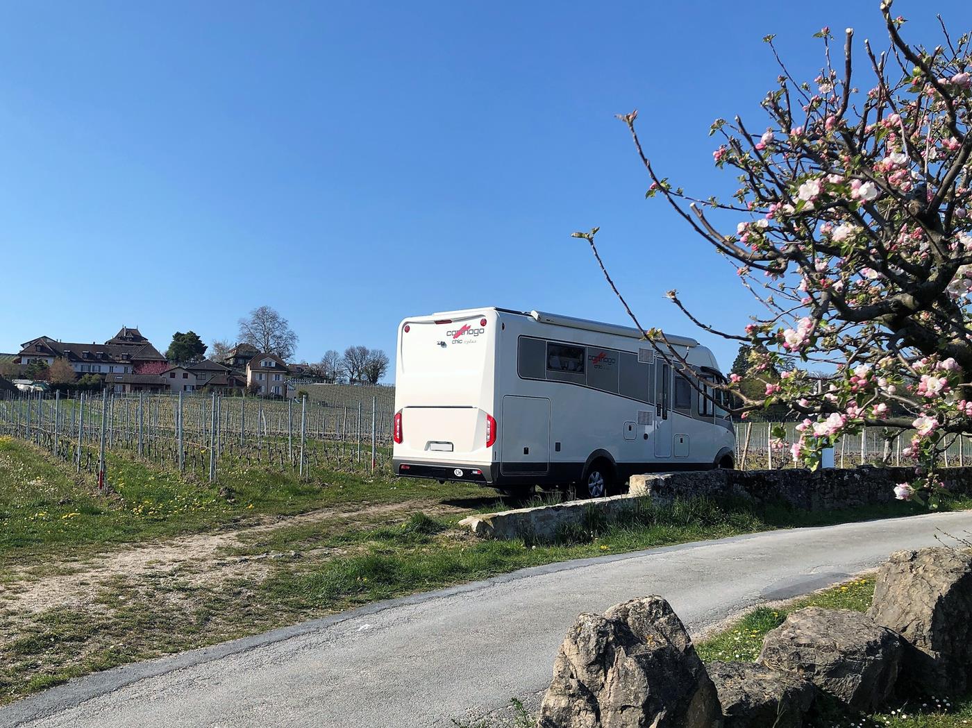 Jeden Frühling findet in Morges im "Parc de l’Indépendance" am Ufer des Genfersees zwischen dem Schloss von Morges und dem Fluss La Morges, das Tulpenfest (Fête de la Tulipe) statt. Ein guter Zeitpunkt, um dort unsere Freunde zu besuchen. Wir fahren um 09:00Uhr bei sonnigem Wetter los. Zuerst geht es nach La Roche, um dort mein Patenkind Louis und seine Familie zu besuchen. Da wir schon dabei sind, Freunde zu besuchen, entschliessen wir uns, noch einen Abstecher nach Sommentier zu machen, um Erika und Eric zu sehen. Wir werden spontan zu einem Fondue eingeladen, was wir sehr gerne annehmen. Nach dem Fondueplausch geht es jetzt definitiv Richtung Morges. Wir treffen um 15:30Uhr bei Michèle und Ruedi ein. Wir können unser Wohnmobil in den Rebbergen mit Blick auf den See hinstellen und geniessen einen wundervollen Abend zusammen.