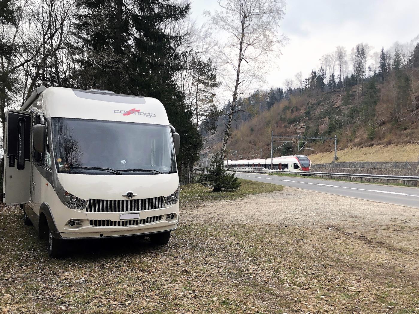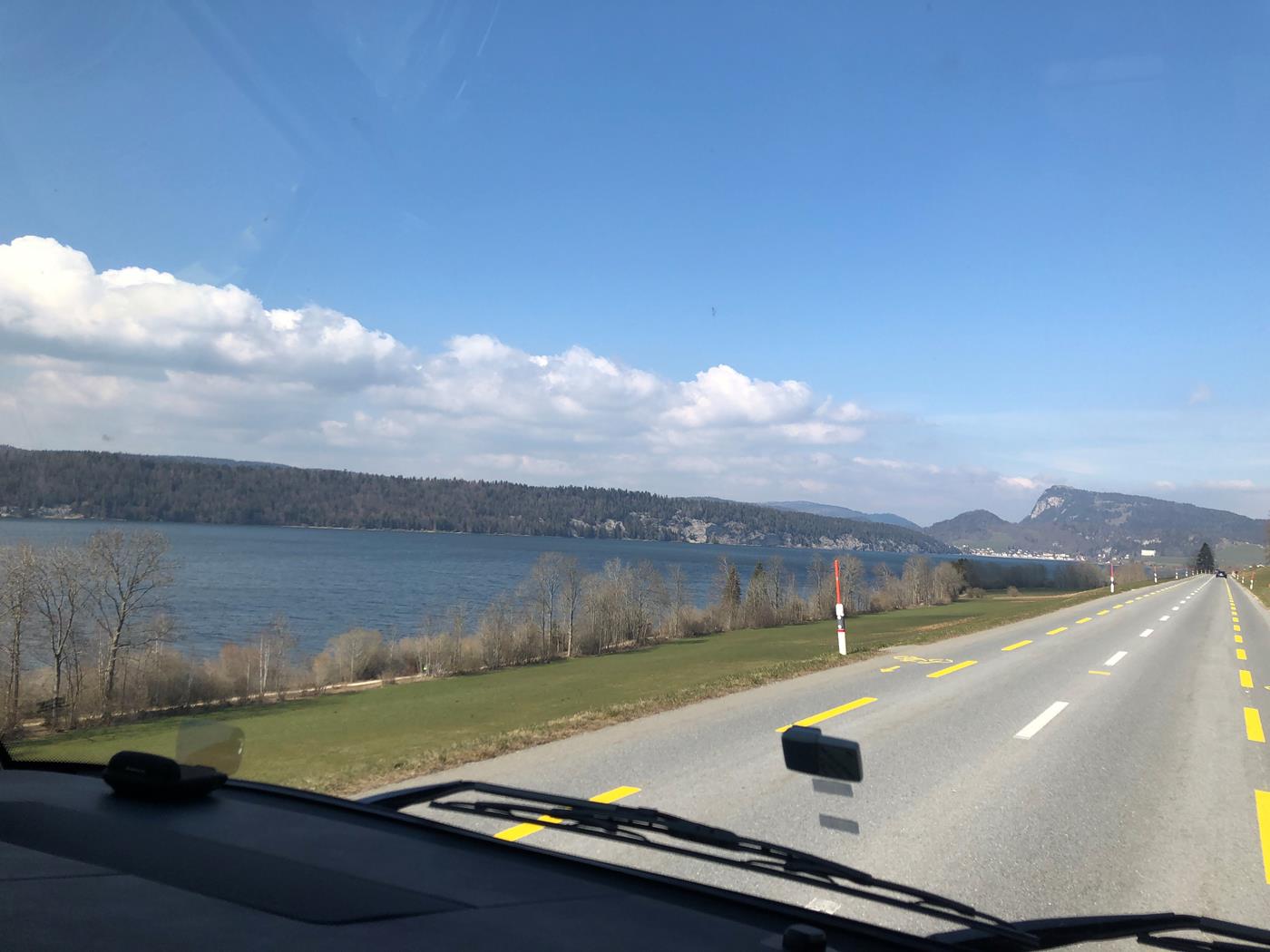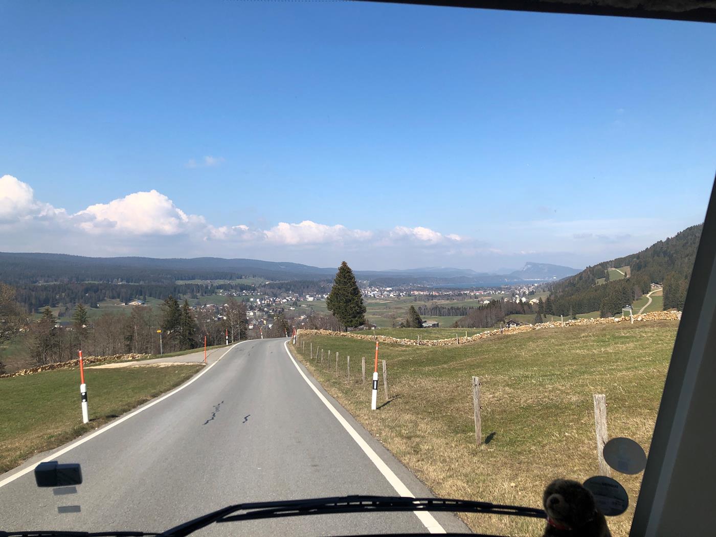 Da es für uns am Lac de Joux keine Möglichkeit gibt zu übernachten, fahren wir weiter und finden zwischen Vallorbe und Fochau um 17:20Uhr einen schönen Übernachtungsplatz.