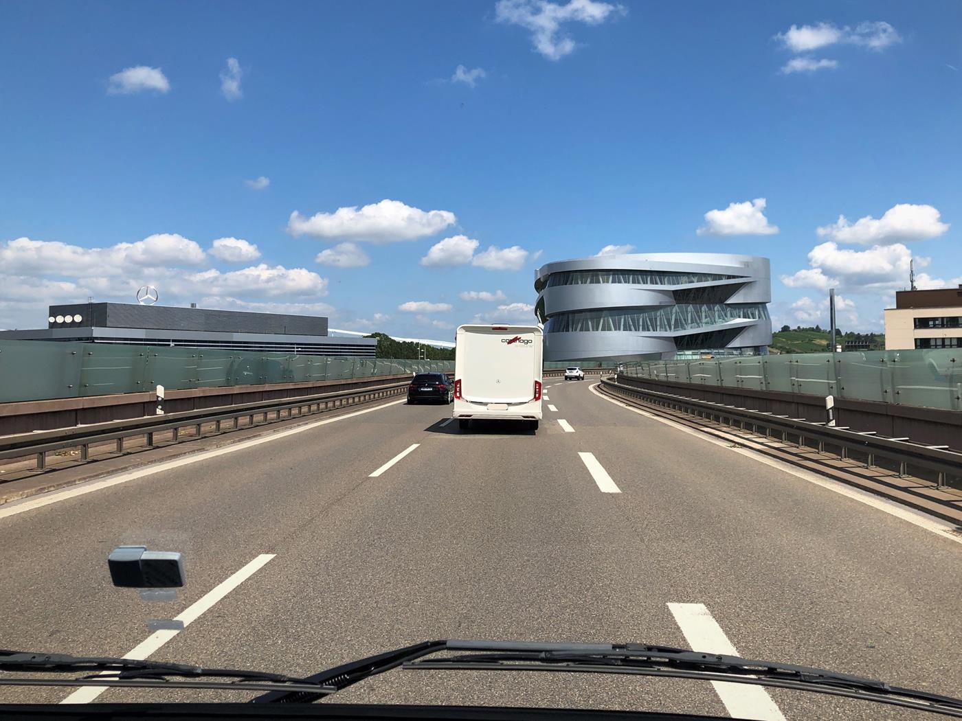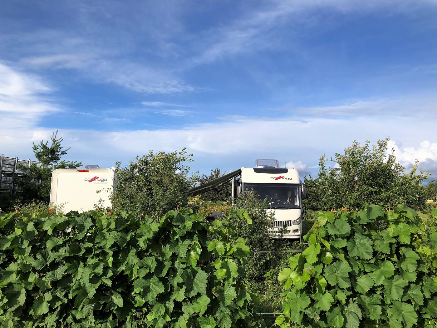 Heute lacht die Sonne wieder und wir fahren via Stuttgart auf den Stellplatz in Allmersbach im Tal.
