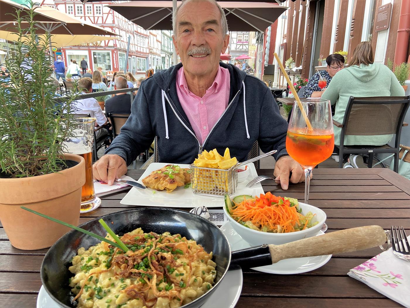Gegen Ende unserer Reise entdecken wir die Dom- und Kaiserstadt Fritzlar. Zu den Besonderheiten Fritzlars zählt das gut erhaltene, mittelalterlich geprägte Stadtbild mit zahlreichen Fachwerkhäusern und der Stadtmauer. Besonders das alte Rathaus und das Kaufmannsgildehaus St. Michaelis hat es uns angetan.Zum Abendessen lassen wir uns im Restaurant "Das Nägel" verwöhnen, wo wir glücklicherweise einen Tisch reserviert haben, sonst hätten wir keinen Platz bekommen.