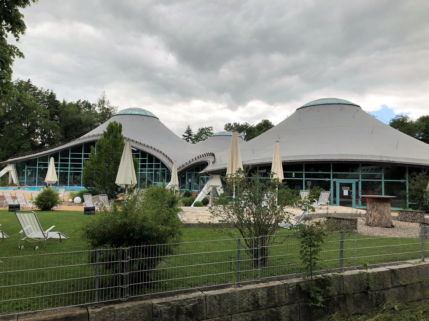 Bei dem Hudelwetter ist der Besuch der Therme ein guter Plan und da im Preis vom Stellplatz auch ein 3-stündiger Eintritt für die Therme enthalten ist, gehen wir nach dem Frühstück baden.