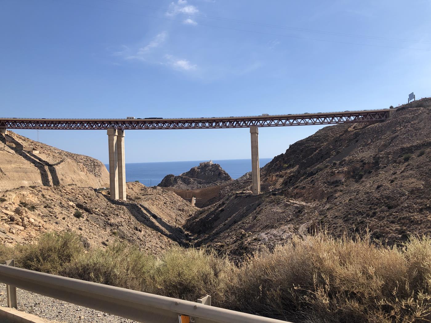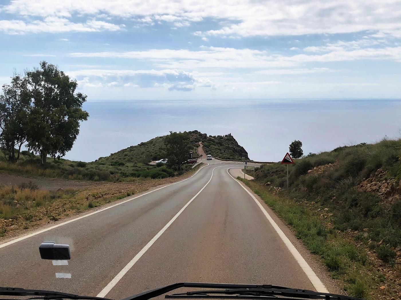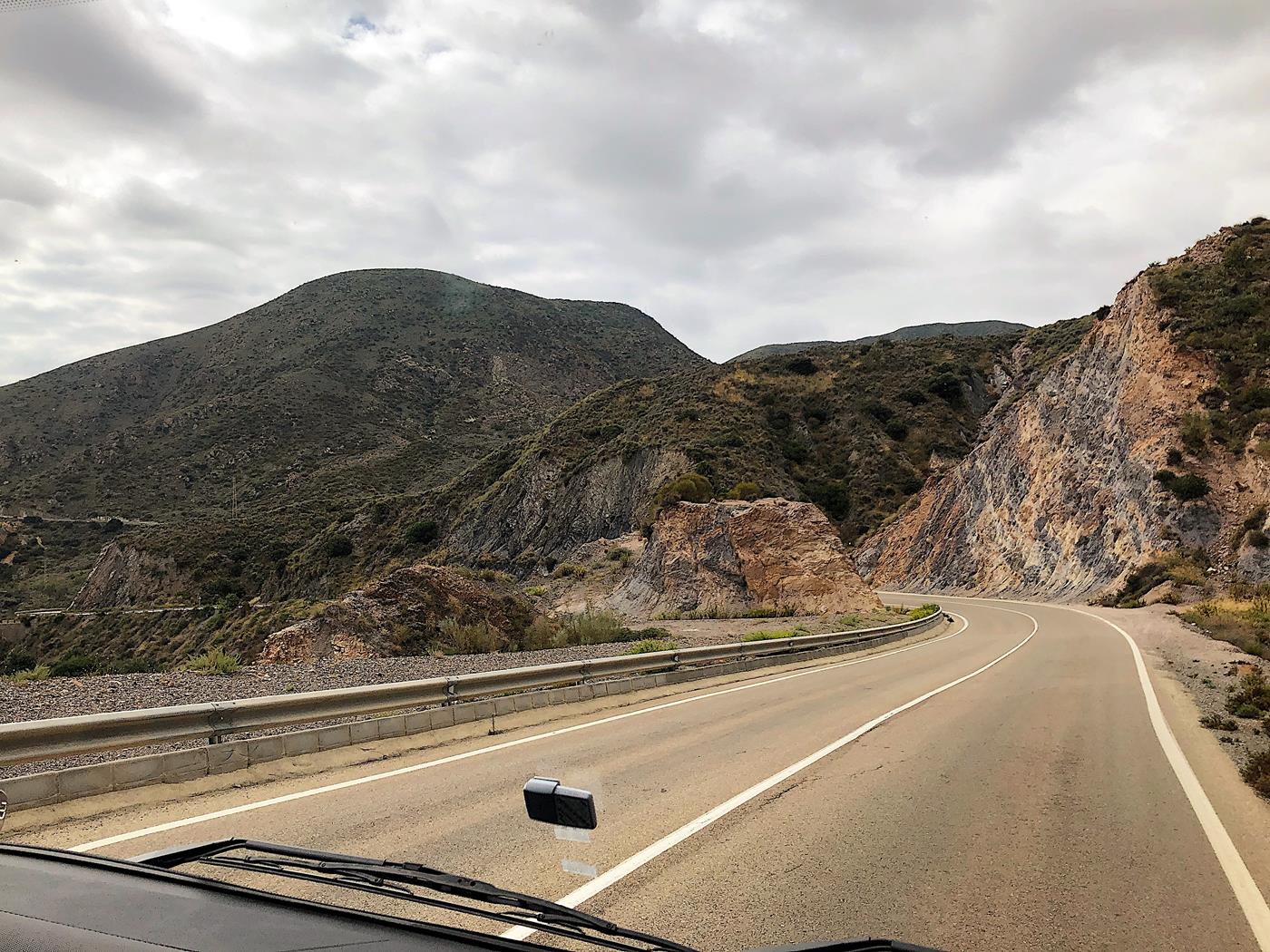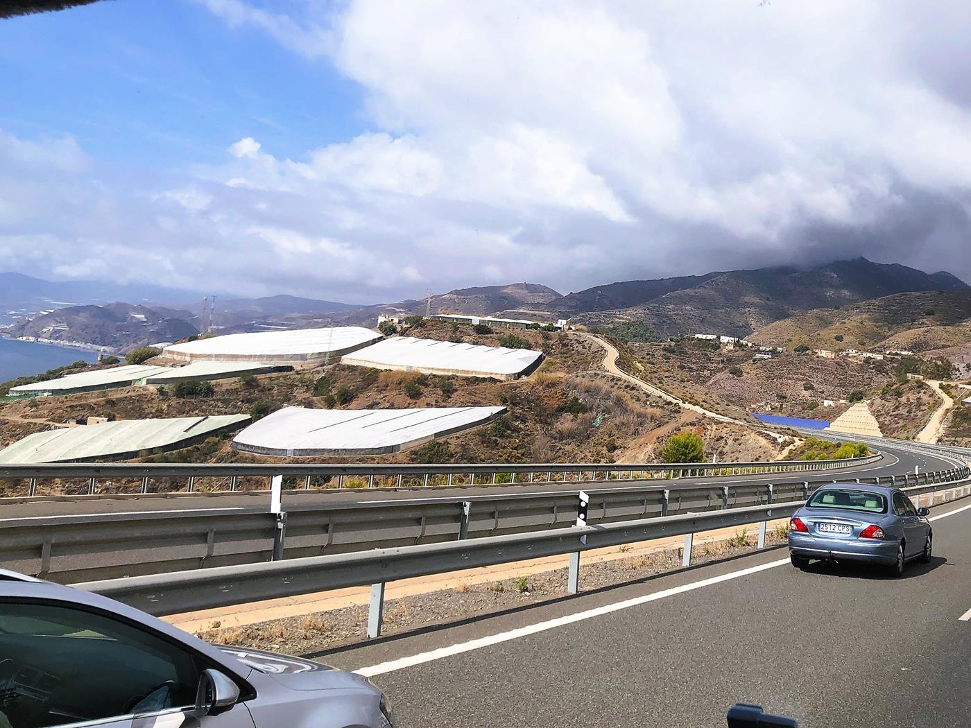 Nach kurzer Zeit auf der AL5107 erreichen wir die Aussichtsplattform Mirador De La Granatilla. Das ist ein spektakulärer Aussichtspunkt, von wo aus man eine gute Sicht auf die Serpentinen durch diese einsame Gegend hat.Etwas später fahren wir durch Agua Amarga (Bitteres Wasser), ein kleines Fischerdorf im Naturschutzpark Parque Natural del Cabo de Gata-Níjar. In San José machen wir unsere Mittagspause, um später durch das Plastikmeer von Almería zu fahren. Rund 31. 000 Hektar der andalusischen Provinz Almería sind mit Gewächshäusern aus weissen Plastikplanen bedeckt - ein Plastikmeer, so gross wie Malta oder München.Da wir in Almeria keinen Stellplatz finden, fahren wir weiter nach Roquetas de Mar, wo wir auf dem Camping Roquetas übernachten.