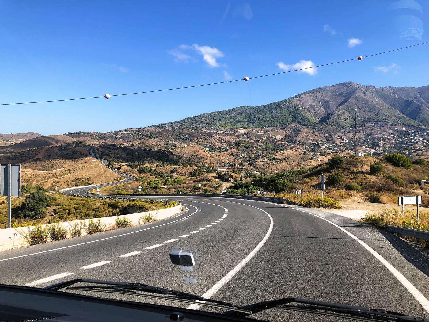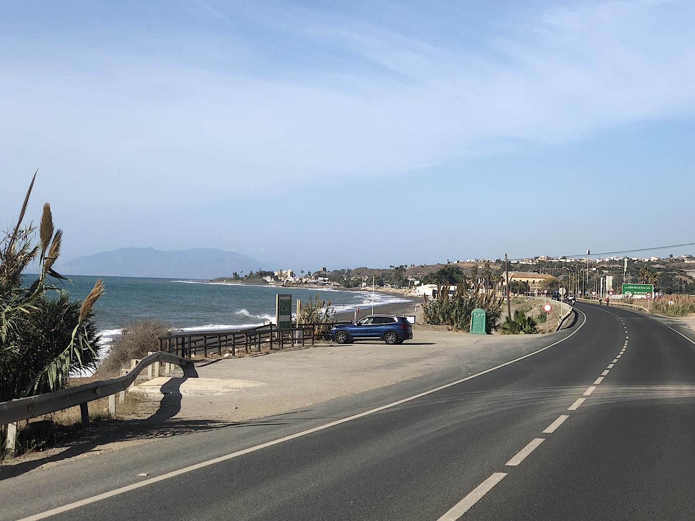 Um 11:50Uhr fahren wir bei schönem und warmem Wetter los Richtung Vélez-Málaga, wo wir unseren Bekannten José treffen wollen. Der Weg zurück auf die Hauptstrasse ist eng und wir müssen aufpassen, dass die Äste nicht zu fest an dem Wohnmobil reiben.