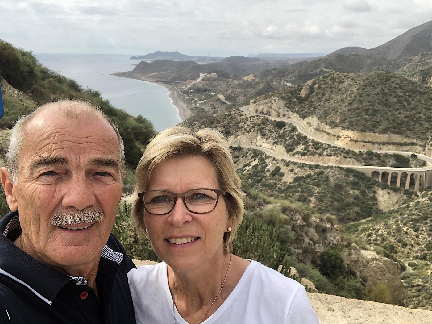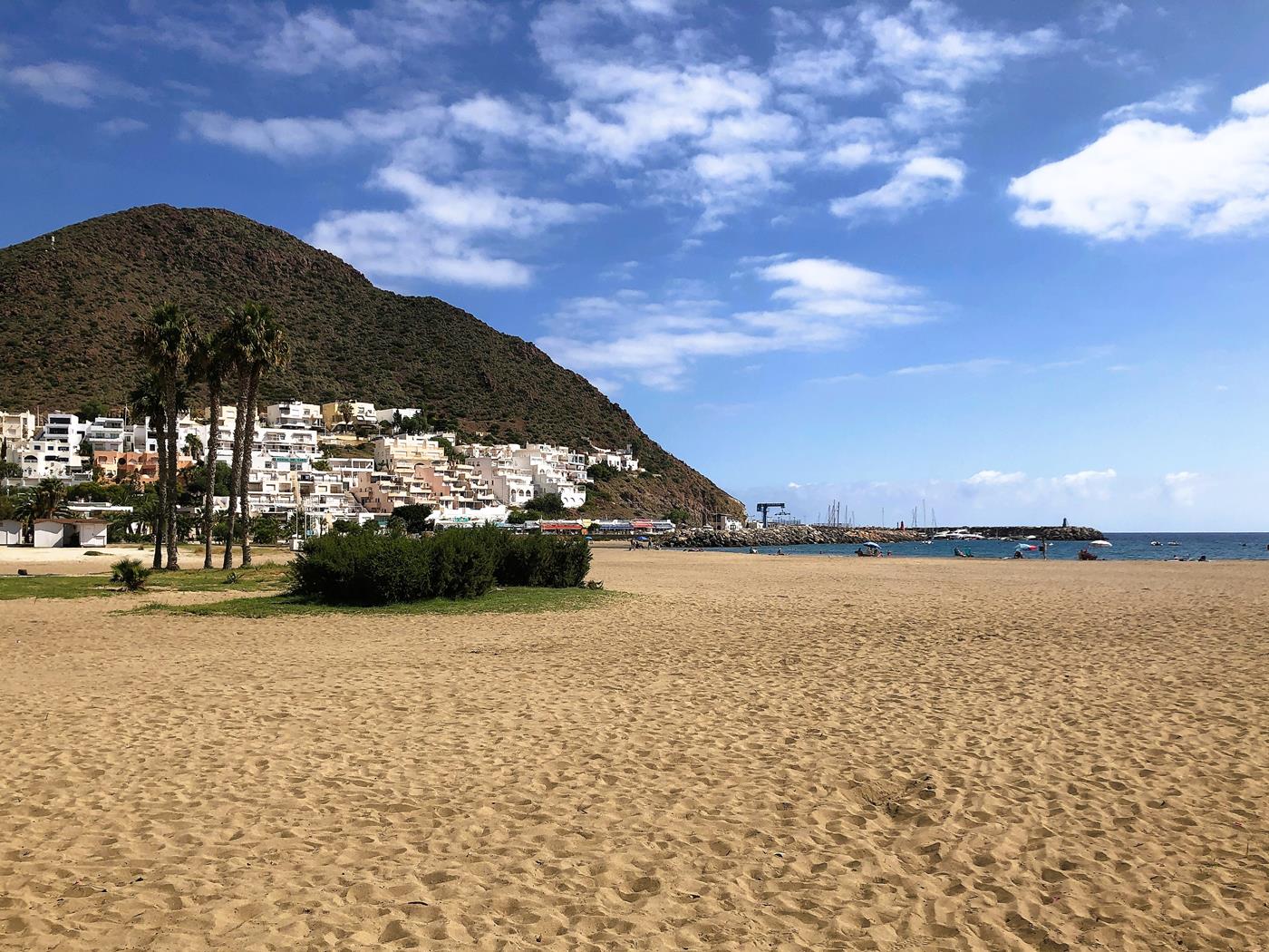 Etwa in der Hälfte der Strecke müssen wir tanken, da die Anzeige wieder einmal rot aufleuchtet. Die Strecke bietet ausser den bekannten Plastik-Gewächshäusern auch spannende Landschaften. Die Schranke zum Stellplatz will sich nicht öffnen, aber Dank der netten Hilfe eines spanischen Wohnmobilisten öffnet uns der Hafenmeister die Schranke manuell. Nachdem wir uns installiert haben, gehen wir mit Jose in ein typisches Restaurant essen und anschliessend in einer Strandbar einen Digestif geniessen.