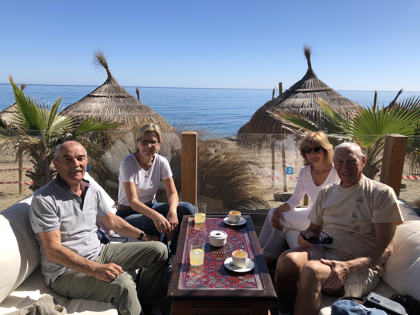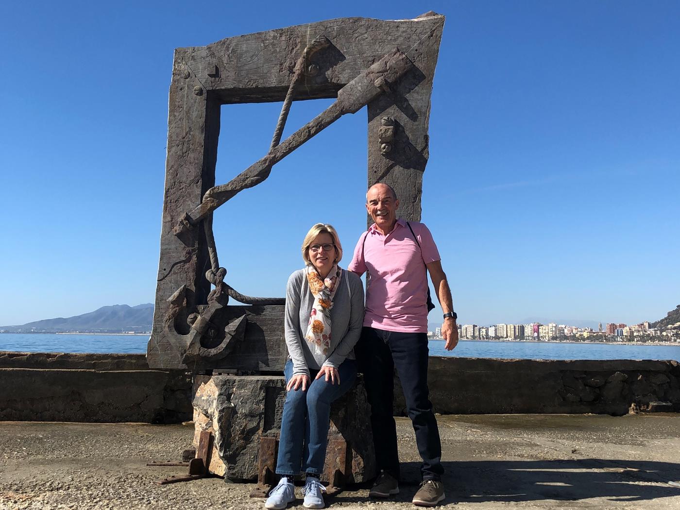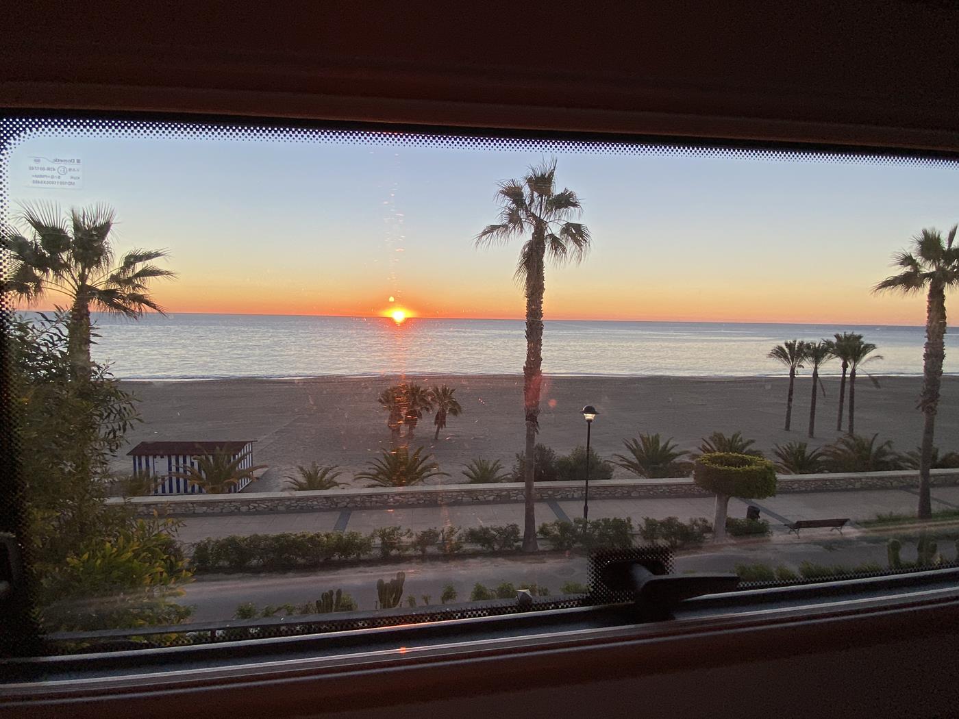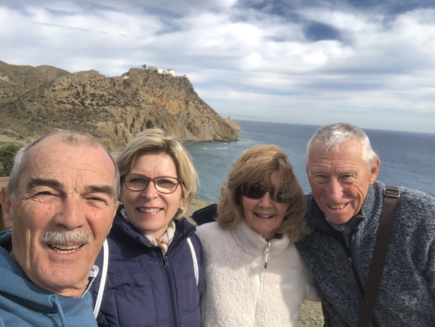 Der nächste Stopp ist beim Mirador de la Playa del Sombrerico, El Sombrerico ist ein natürlicher, wilder Strand ohne Annehmlichkeiten oder Infrastruktur für Touristen.Danach fahren wir rauf in die Berge. Bob führt uns auf schmalen Strassen auf die Sierra Cabrera, eine der schönsten Bergregionen in Almeria. Der Gipfel liegt auf 488 Meter. Als wir auf der anderen Seite runterfahren sind wir überrascht, plötzlich auf eine luxuriöse Siedlung zu treffen.Dort machen wir unseren Mittagshalt und geniessen ein wundervolles Mittagessen im marokkanischen Restaurant Riad Cabrera, Turre.Auch am Donnerstag machen wir wieder ein Foto vom Sonnenaufgang aus unserem Schlafzimmer. Heute hat Bob wieder ein spannendes Programm für uns zusammengestellt. Wir wollen die berühmten Filmsets in der Region (in Clint Country) besuchen und in San Jose im Clint Eastwood Restaurant einkehren. Wir staunen über das Wissen, das Bob über die verschiedenen Drehorte hat. Er erklärt uns welche Szenen von welchem Film wo gedreht wurden. An diesem Tag haben wir viel gelernt, sind müde und gehen früh schlafen, da wir am Morgen weiterfahren wollen, um noch unsere Freunde in Malága zu besuchen.Freitag, 25.02.2022 Mojácar – Carboneras – Velez-Málaga – Algarrobo