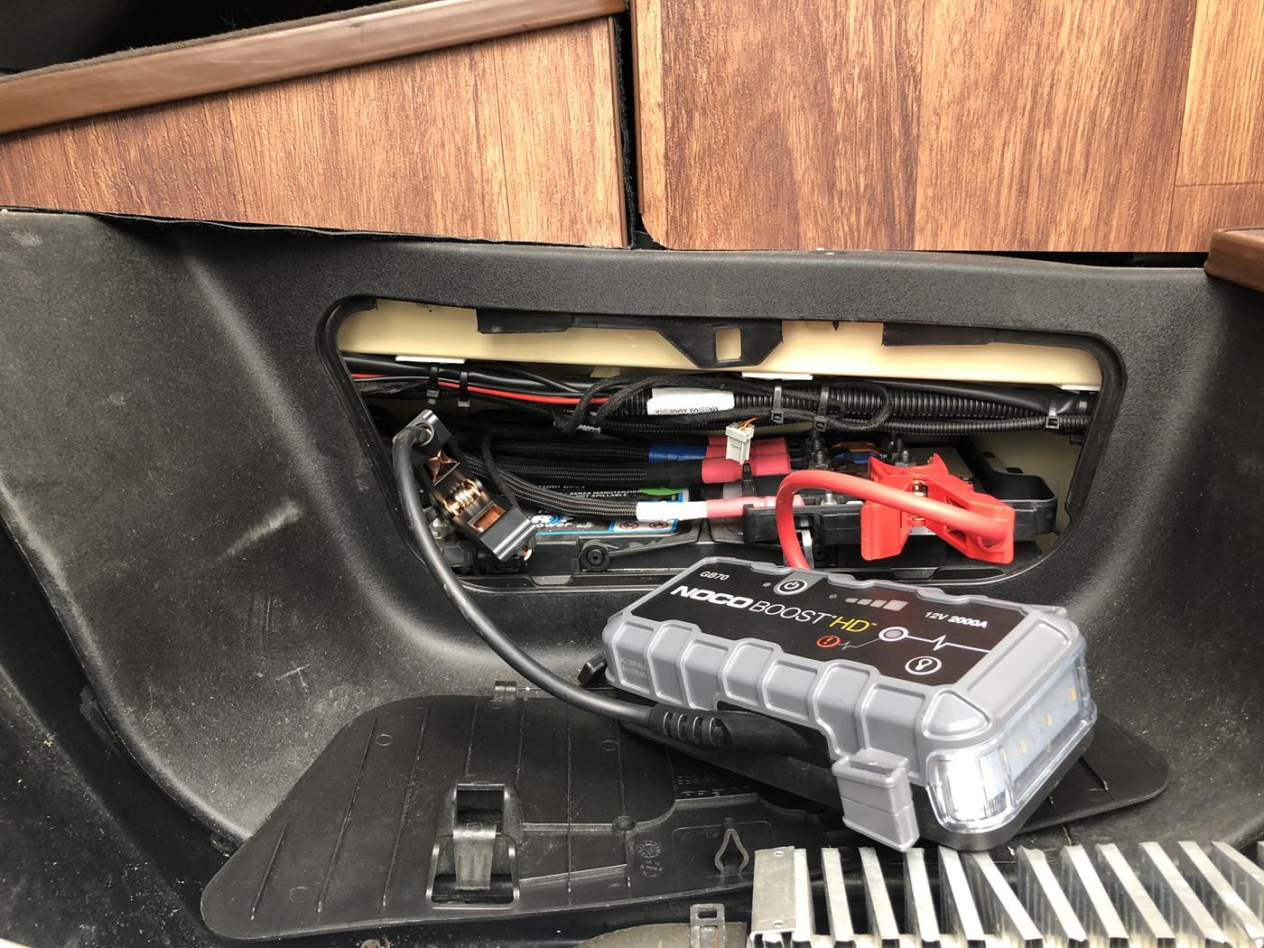 Als wir starten wollen, macht der Motor keinen Wank! Es ist die Batterie und wir haben so geparkt, dass man die Motorhaube kaum öffnen kann. Es bleibt uns nichts anderes übrig als die Pannenhilfe zu rufen. Diese trifft um 14:00Uhr bei uns ein und gibt uns Starthilfe. Danach können wir losfahren und benötigen auch dieses Mal wieder den Hafenmeister, der uns die Barriere öffnet.