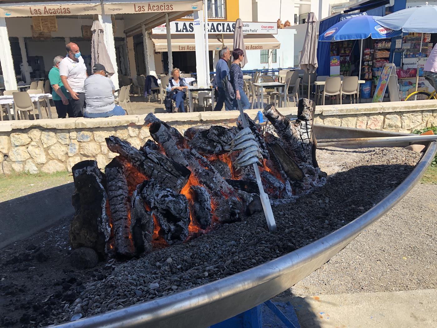 Wir fahren mit dem Bus nach Málaga und schlendern dort kurz durch die Stadt bevor wir mit dem nächsten Bus nach El Palo fahren. Von dort spazieren wir nach Pedregalejo, wo wir im Restaurant Las Acacias ein feines Mittagessen bestellen.Nach dem Essen spazieren wir gemütlich der Strandpromenade entlang bis nach Málaga, wo wir in der berühmten Bodega El Pimpi unsere Freunde treffen. Auf dem Weg zur Busstation können wir noch die Weihnachtsbeleuchtung an der Calle Larios bewundern. Danach fahren wir mit dem letzten Bus nach Torremolinos.Langsam, aber sicher müssen wir den Rückweg antreten. Heute packen wir und überlegen uns, wie wir unser Wohnmobil am besten aus dem Platz manövrieren. Nachdem das geschafft ist, gehen wir noch einmal nach Pedregalejo um in einem der famosen Chiringuitos etwas Kleines zu essen.Donnerstag, 03.03.2022 Torremolinos – Málaga – Area los Alcázares