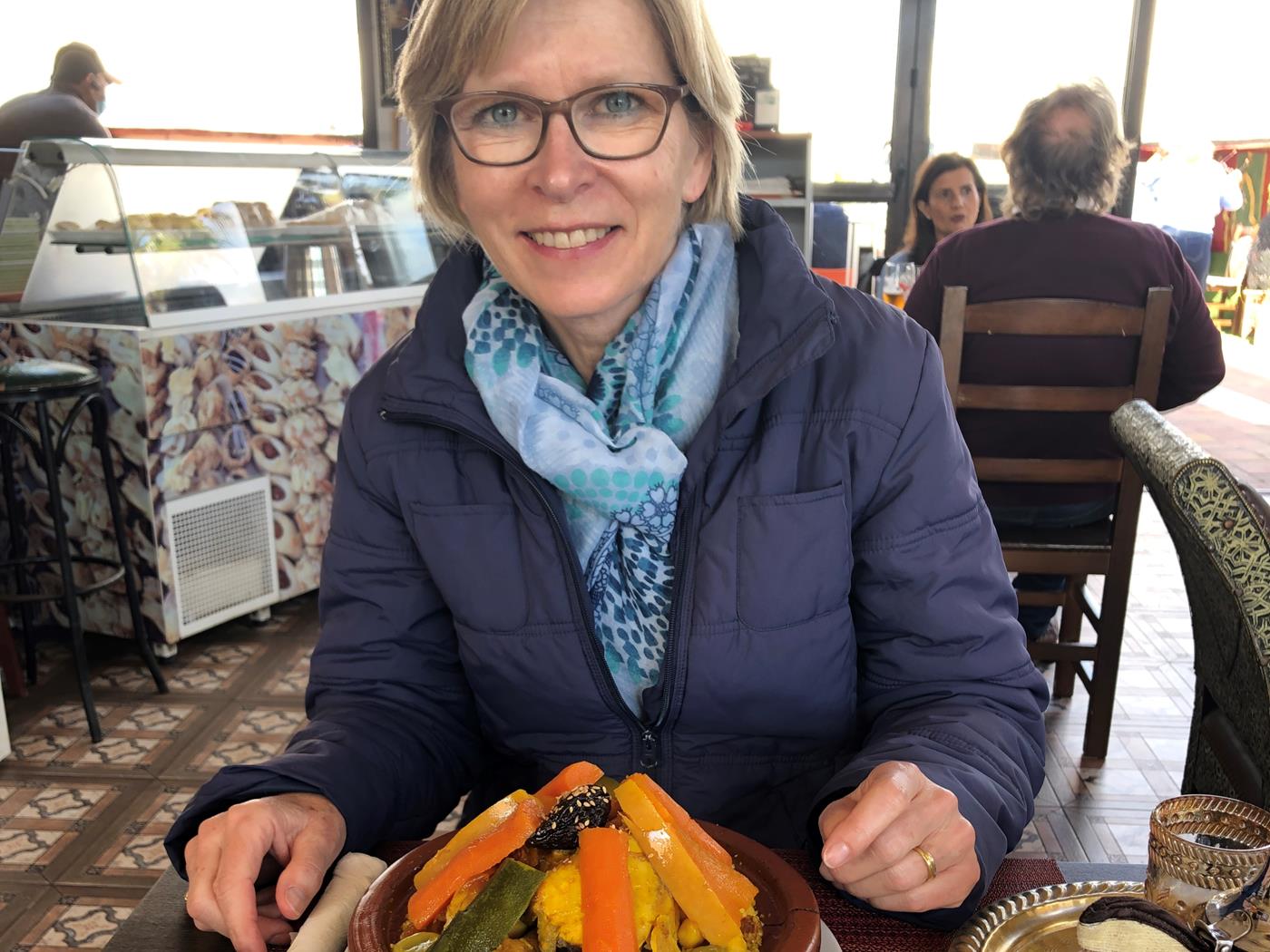 Heute scheint wieder die Sonne und so machen wir nach dem Frühstück einen Ausflug mit der Vespa nach Mazarrón. Leider bläst ein starker, kühler Wind und so sind wir froh in einem marokkanischen Restaurant etwas windgeschützt die Spezialität (Tajine) essen zu können. Das hat uns sehr gut geschmeckt und die Portionen waren so gross, dass wir diese unmöglich aufessen konnten.Montag, 21.02.2022 Bolnuevo – Aguilas – San Juan – Garrucha – Mojácar