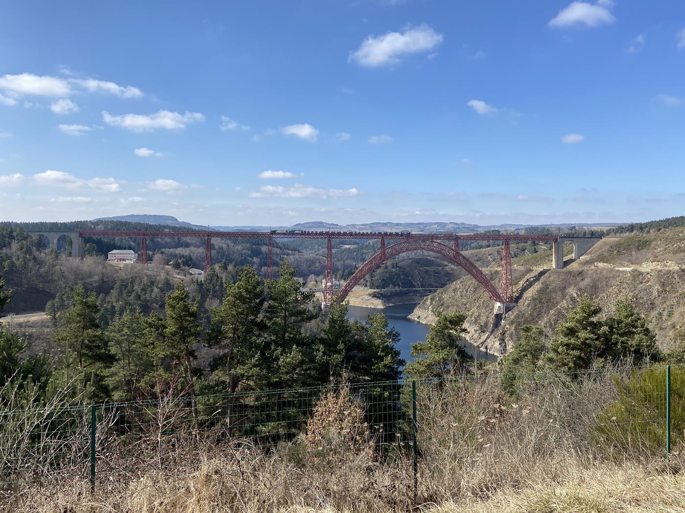 Eine Stunde später, immer noch auf der A75 machen wir einen Halt, um den Garabit-Viadukt zu bewundern. Kurz vor dem Bau des Eiffelturms hat der Visionär Gustave Eiffel zwischen 1880 und 1884 das elegante und gewagte Bauwerk aus Metall geschaffen. Der Viadukt war für 25 Jahre die höchste Eisenbahnbrücke der Welt und zählt zu den bedeutendsten Brücken des 19. Jahrhunderts.