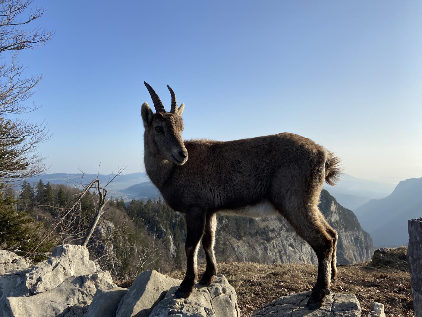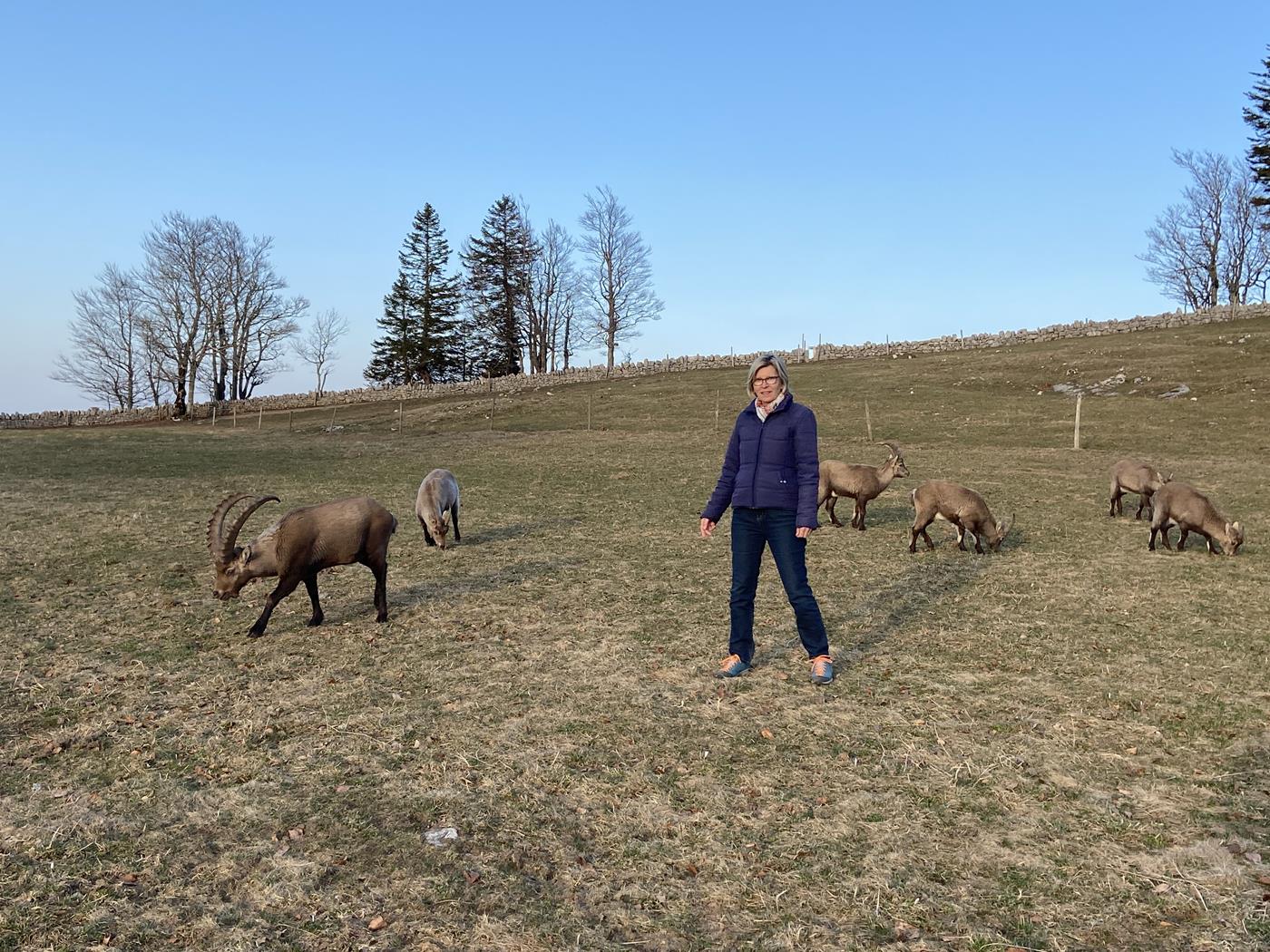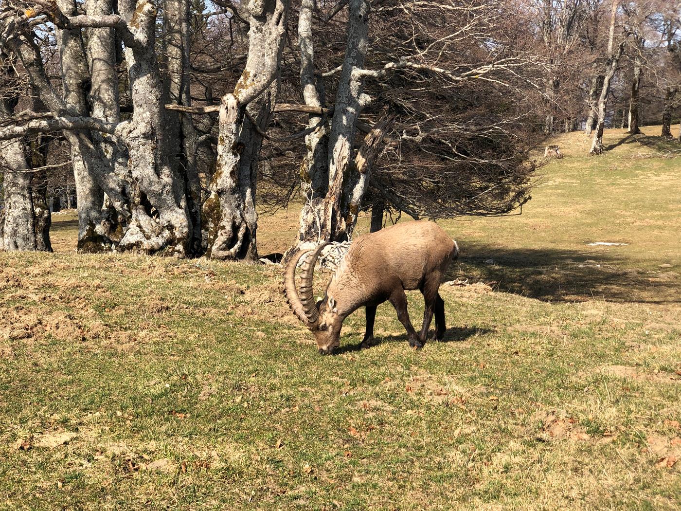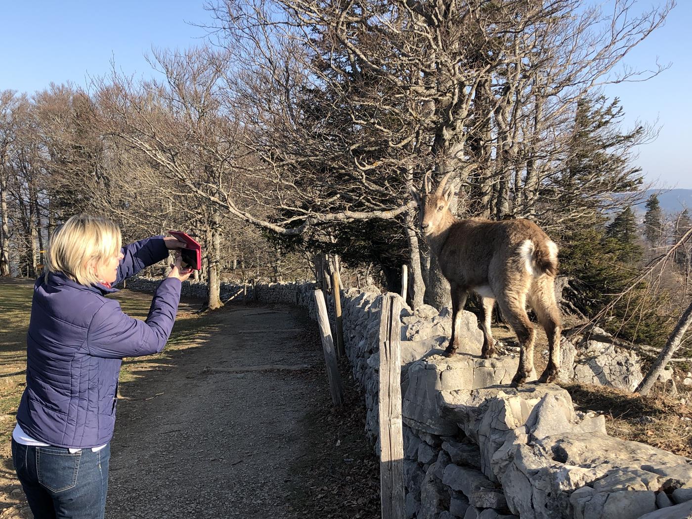 Wir wollen ebenfalls zu dem Grand Canyon der Schweiz wandern. Der Creux du Van ist das älteste Naturreservat der Schweiz (seit 1870) und ist als Jagdbanngebiet ein Paradies für Gämse, Steinböcke, Murmeltiere und andere Wildtiere. Wir können es kaum fassen, dass wir bei unserer Wanderung so nahe an die Steinböcke kommen und diese scheinen keine Scheu vor den Menschen zu haben.Nach dieser eindrücklichen Begegnung genehmigen wir uns einen Apéro. Die Tagestouristen fahren weg und wir können ganz für uns einen schönen Sonnenuntergang bewundern.