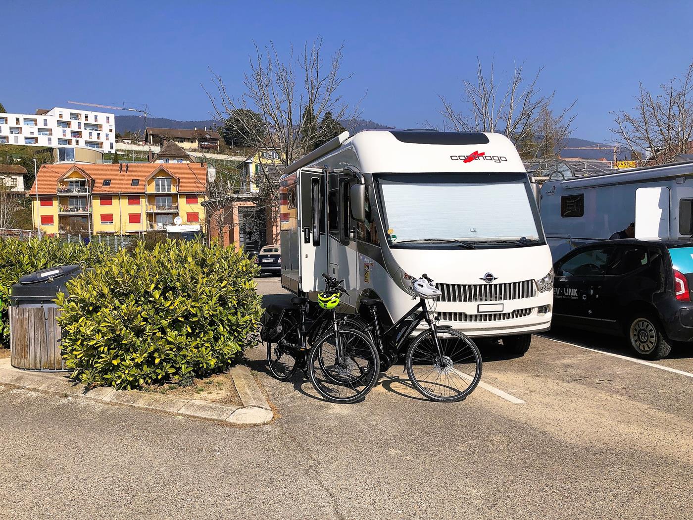 Gestern haben wir in Interlaken die Halterung für unsere e-bikes montieren lassen und so können wir heute unsere Bikes mit auf die Reise nehmen.