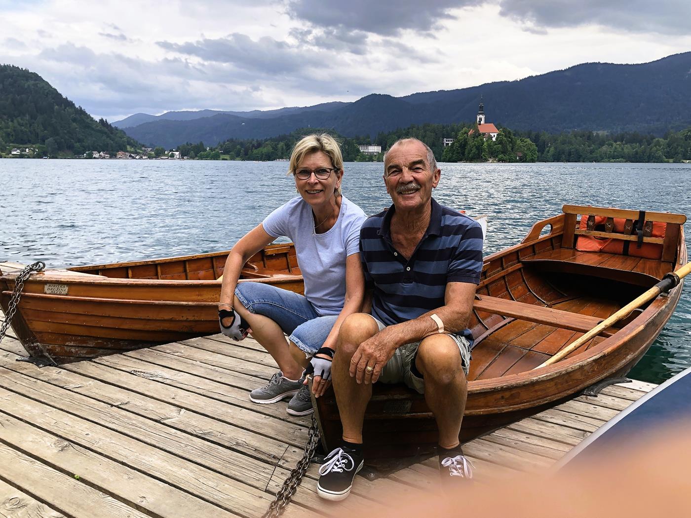Nachdem wir einen schönen Platz auf dem Campingplatz gefunden haben, machen wir zusammen mit Michaela und Peter eine Radtour um den Bleder See.