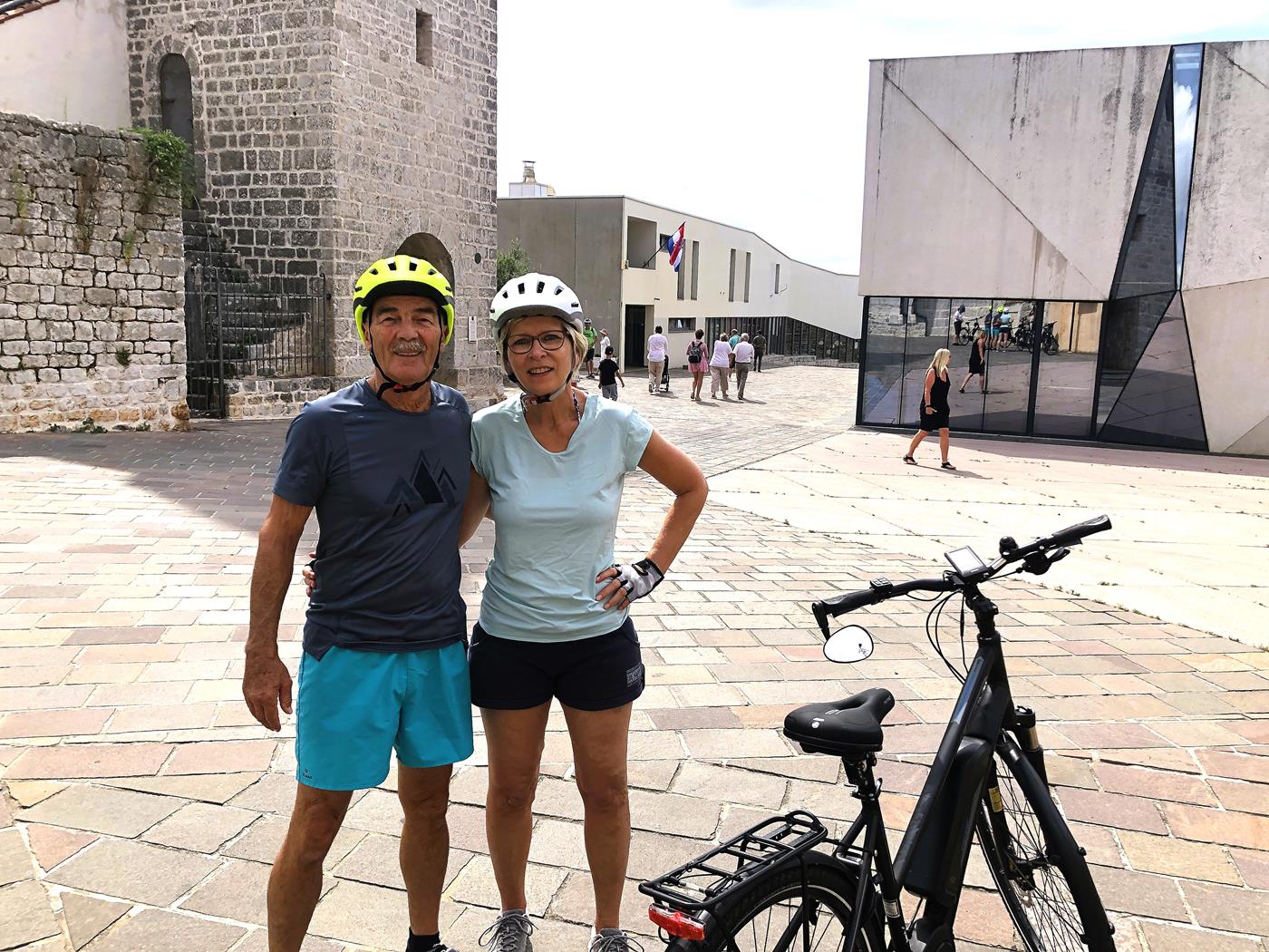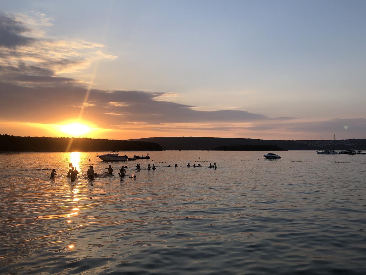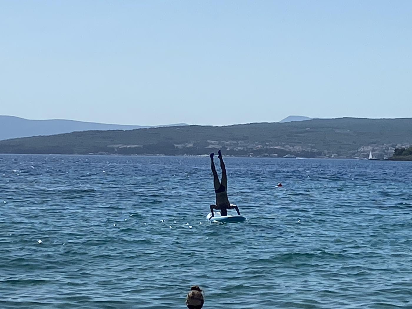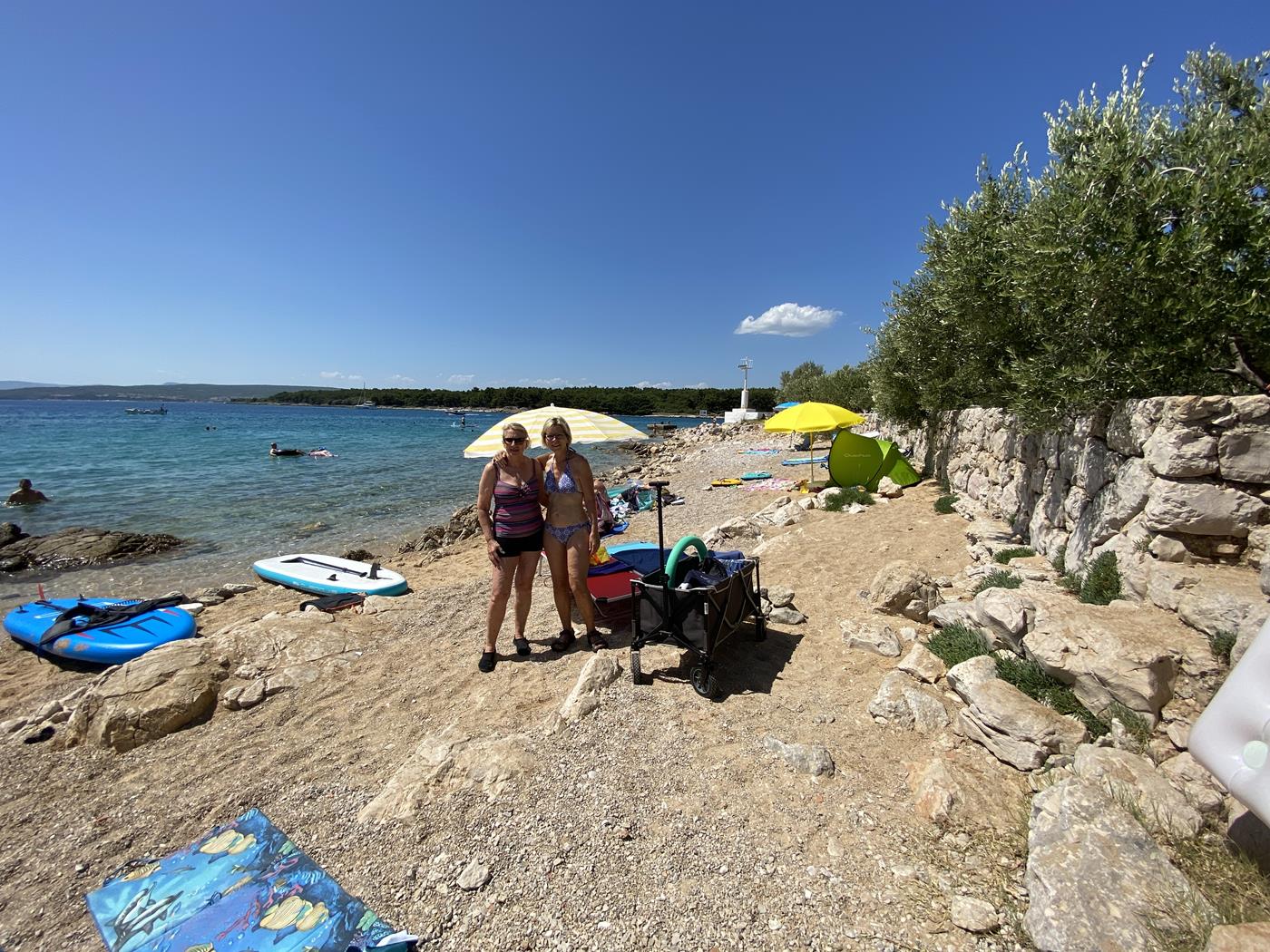 Am Samstagvormittag ist Sport angesagt! Als erstes radeln wir nach Krk, wo wir uns das Städtchen anschauen und als Belohnung ein Eis essen. Am Nachmittag gehen wir an den Strand zum Baden und Peter und ich machen mit dem SUP eine Erkundungstour.Am Sonntag verzichten wir auf eine Radtour es ist einfach zu heiss, um mit dem Fahrrad rumzufahren. Wir geniessen die Aktivitäten am Strand und am Abend werden wir mit einem wundervollen Sonnenuntergang belohnt.Montag, 27.06.2022 Punat – Povile – Karlobag – Drage