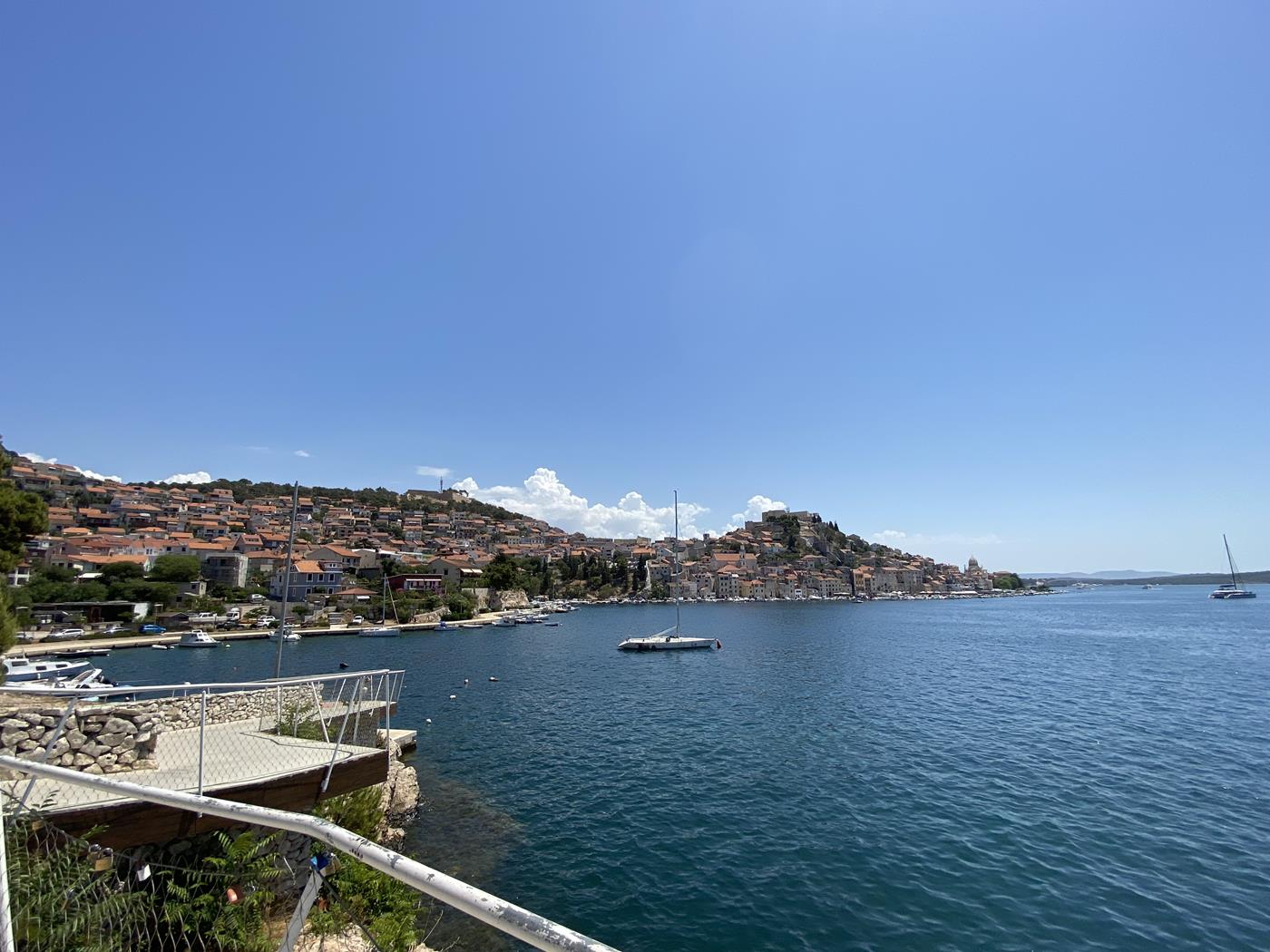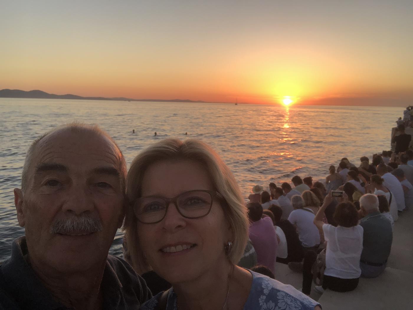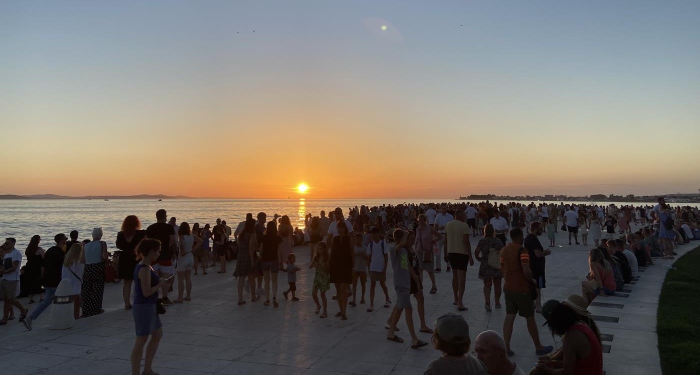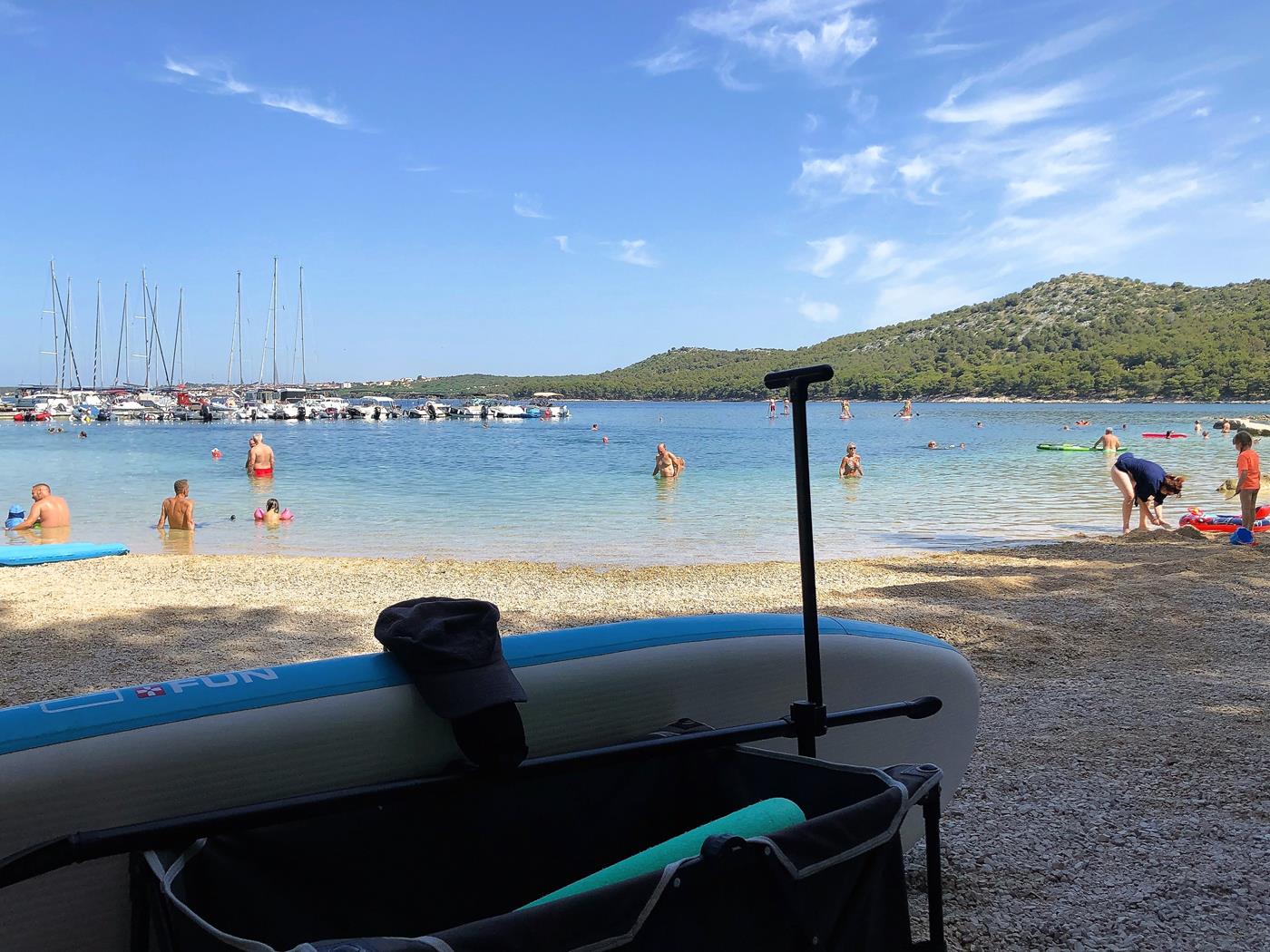 Es ist so heiss, immer etwa 33°C, dass wir die Tage mit Ausflügen zu den Inseln mit dem SUP und baden am Strand verbringen. Da der Campingplatz etwas einsam an einer Bucht liegt, haben wir auch keine Möglichkeit abends etwas zu unternehmen.Am Donnerstag mieten wir ein Auto, gehen einkaufen und machen einen Abstecher nach Sibenik. Am Abend fahren wir nach Zadar um den Sonnenuntergang bei der weltberühmten Meeresorgel zu sehen.Montag, 04.07.2022 Drage – Punat