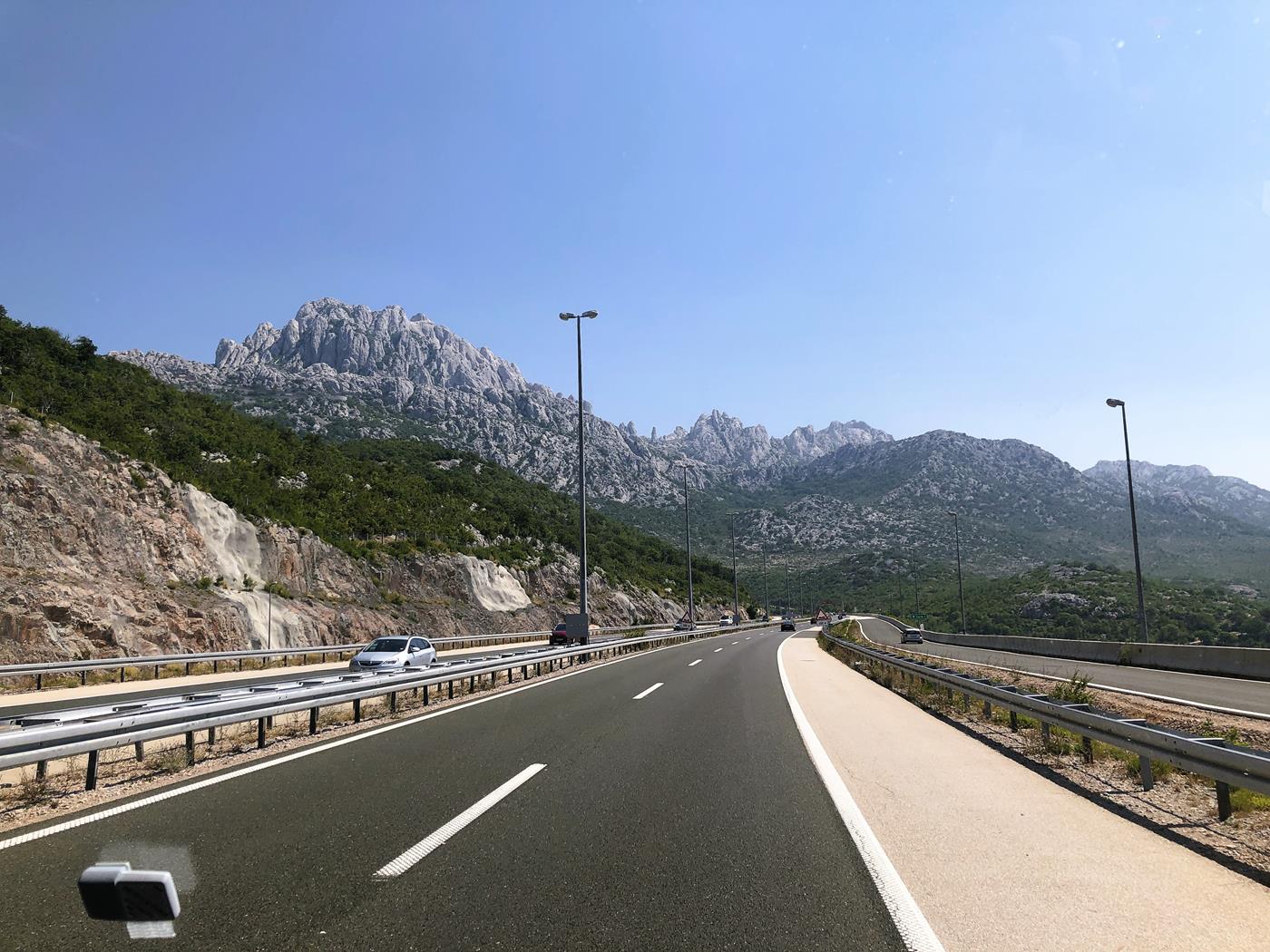 Bei unserer Abfahrt in Bled war es noch stark bewölkt, aber je weiter wir nach Süden fahren je schöner wird das Wetter.