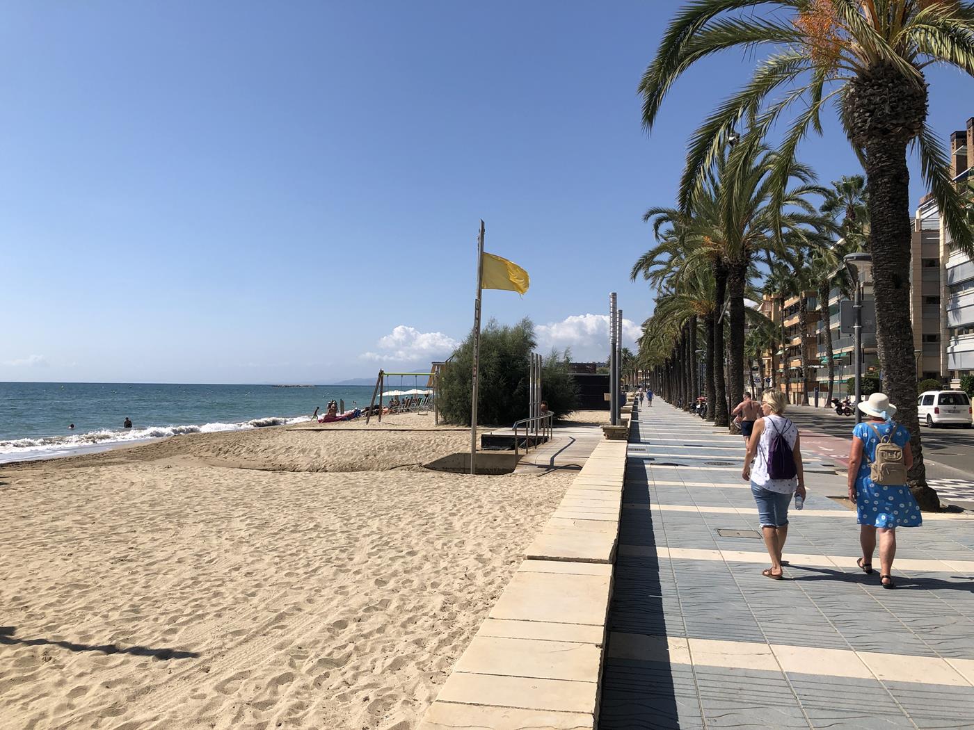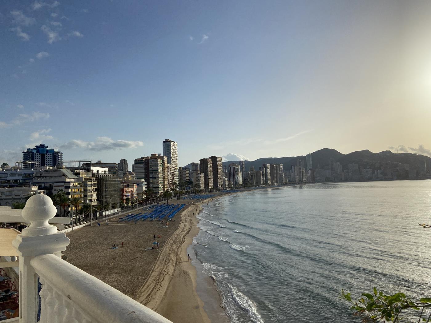 Wir stehen um 08:00Uhr auf und gehen in die Stadt, um zu frühstücken. Auf dem Weg zum Strand sehen wir, dass auf einem grossen Platz der Markt aufgebaut wird, welchen wir auf dem Rückweg besuchen wollen. Wir schlendern der Playa de Levante entlang, um am Ende der Strandpromenade auf der Placa del Castell die wunderschöne Aussicht zu geniessen. Danach gehen wir zum Balcon del Mediterraneo, eine weitere Sehenswürdigkeit von Benidorm. Der Balkon wurde auf einem Felsvorsprung errichtet, welcher die Strände Poniente und Levante trennt. Vor unserer Weiterreise besuchen wir noch die Església de Sant Jaume i Santa Anna neben dem La Placa del Castell. Im Inneren befindet sich die Kapelle der Virgen del Sufragio, der Schutzpatronin von Benidorm.