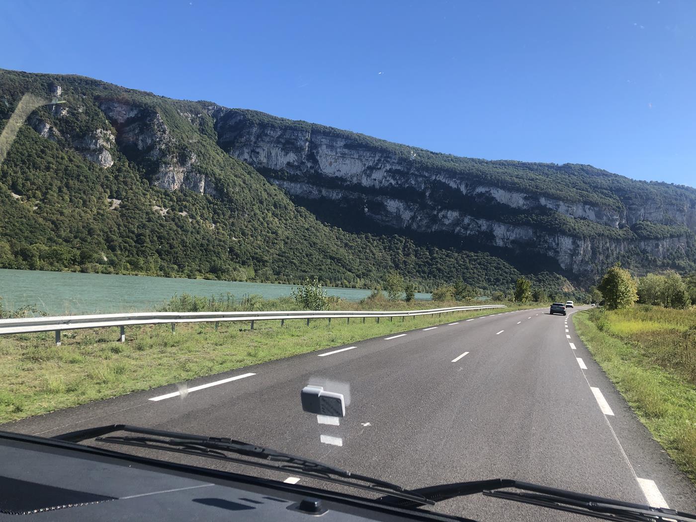 Infolge dieser Verzögerung entschliessen wir uns, noch eine weitere Nacht in Frankreich zu bleiben und fahren auf den Stellplatz in Seyssel, obwohl es unterwegs verlockende Parkmöglichkeiten am See hätte.