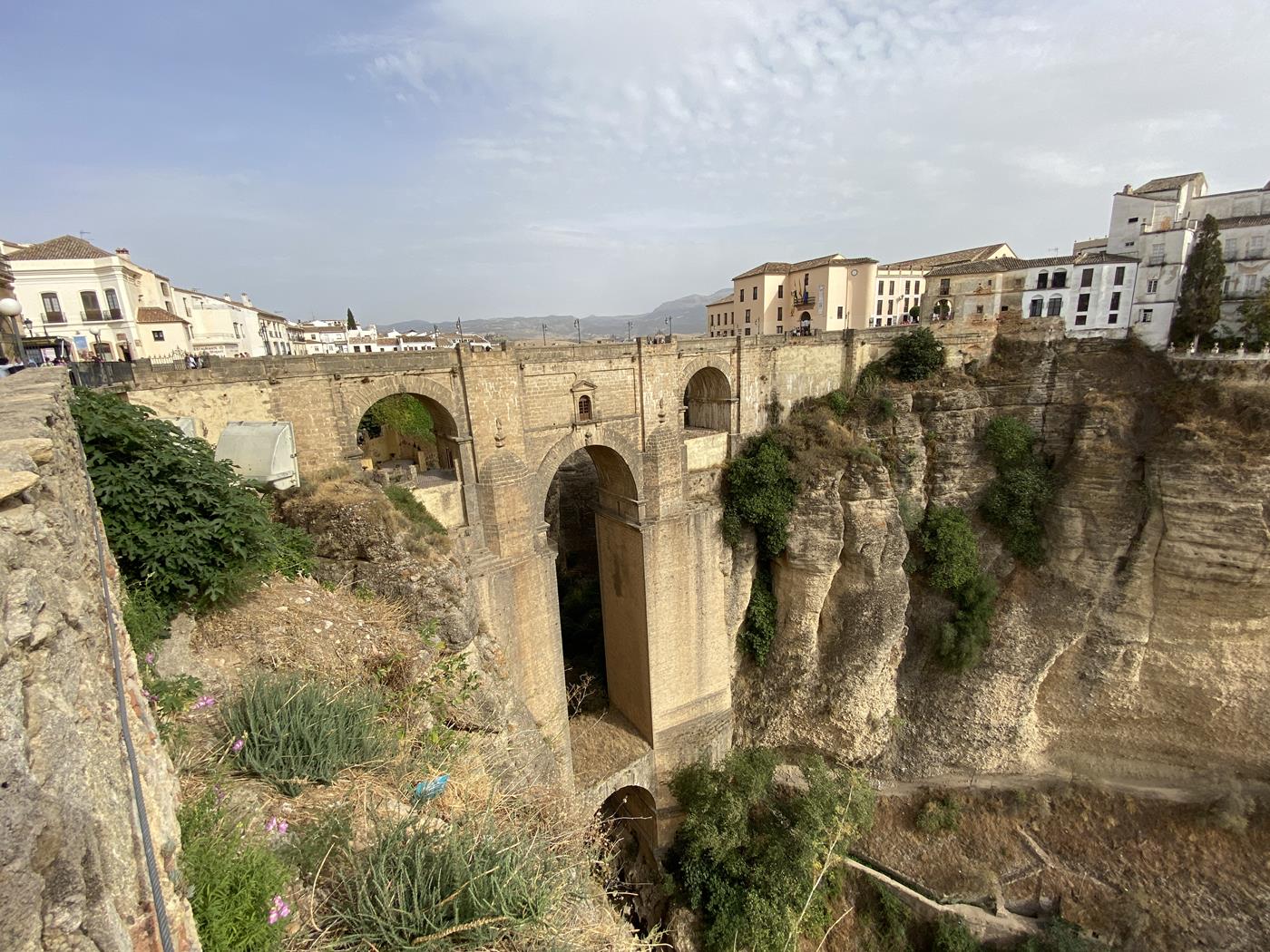 Wir haben Ronda vor einigen Jahren zusammen mit spanischen Freunden besucht und waren beeindruckt von der atemberaubenden Lage oberhalb der tiefen Schlucht El Tajo. Heute gehen wir zuerst zu der in der Neustadt gelegenen Plaza de Toros, eine legendäre Stierkampfarena aus dem 18. Jahrhundert. Dies ist eine der ältesten Arenen Spaniens. Danach geht es zur Puente Nuevo (neue Brücke), die Hauptattraktion von Ronda und das Emblem der Stadt. Die Puente Nuevo, welche im Jahr 1793 nach 42 Baujahren vollendet wurde, überspannt das Tal und verbindet die Altstadt und die neueren Stadtteile, welche vorher durch das El Tajo-Tal und den Guadalevin-Fluss getrennt waren. Diese spektakuläre Brücke ist fast 100 Meter hoch.