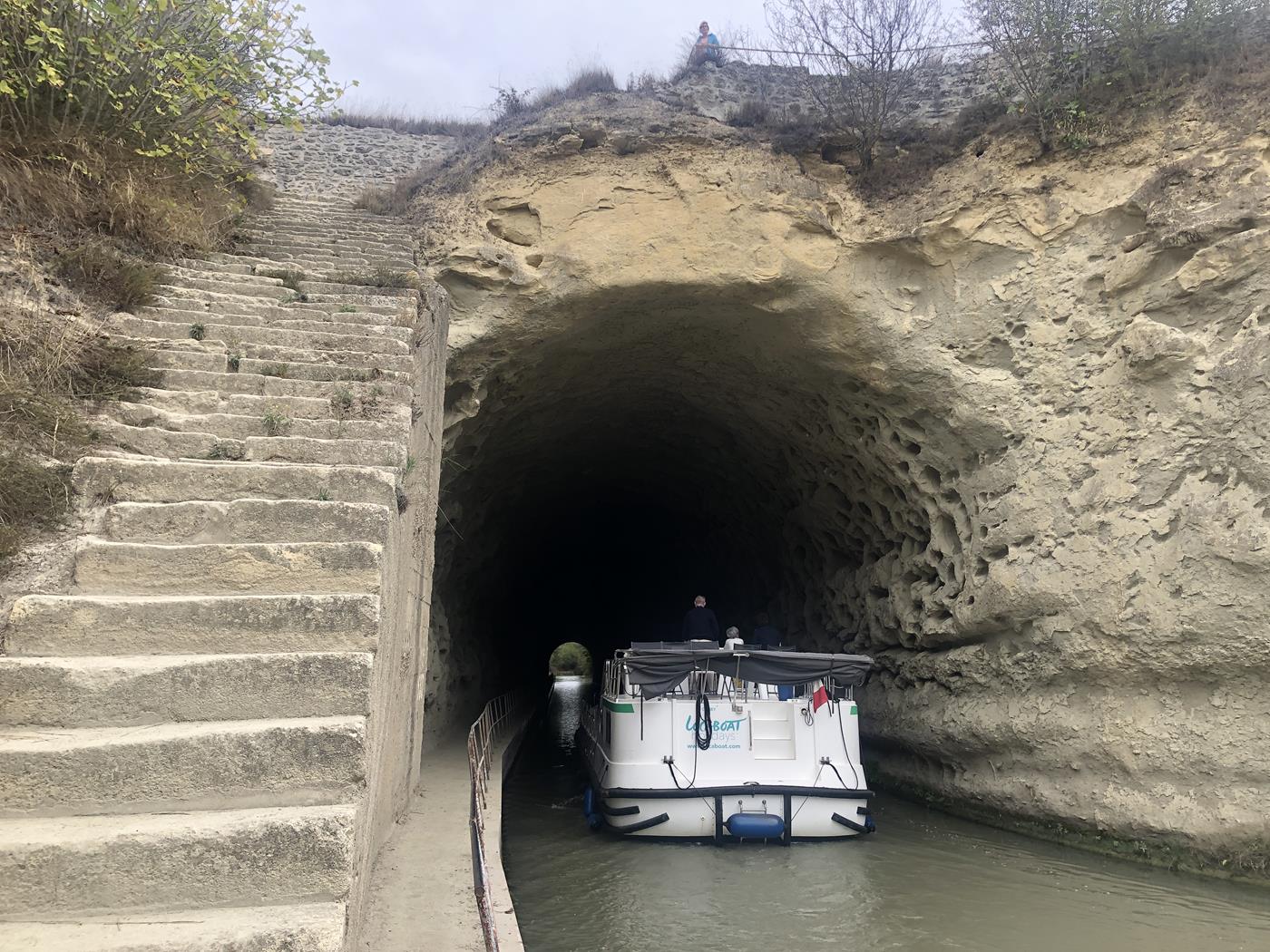 Anfangs Jahr haben wir das ehemalige Oppidum d'Ensérune besucht und dieses Mal wollen wir den Malpas-Tunnel besichtigen. Der Tunnel führt den Canal du Midi unter dem Hügel d'Ensérune im französischen Hérault hindurch. Der Malpas-Tunnel wurde 1679 ausgegraben und war Europas erster schiffbarer Kanaltunnel. Der Tunnel trägt seinen Namen zu Recht - Malpas bedeutet "schwierige Passage". Der durch das Felsgestein gebohrte "Flusstunnel" ist 173 Meter lang, 8,5 Meter breit und 6 Meter hoch und an seinem linken Ufer läuft ein Treidelpfad entlang. Heute kreuzen sich hier drei übereinanderliegende Tunnel auf drei Niveaus: der oberste ist der des Canal du Midi, der mittlere ist ein Eisenbahntunnel und der unterste führt das Wasser des Etang de Montady.