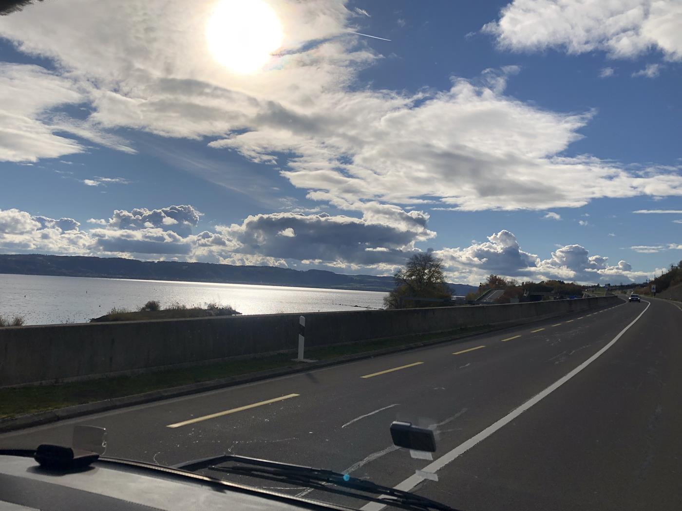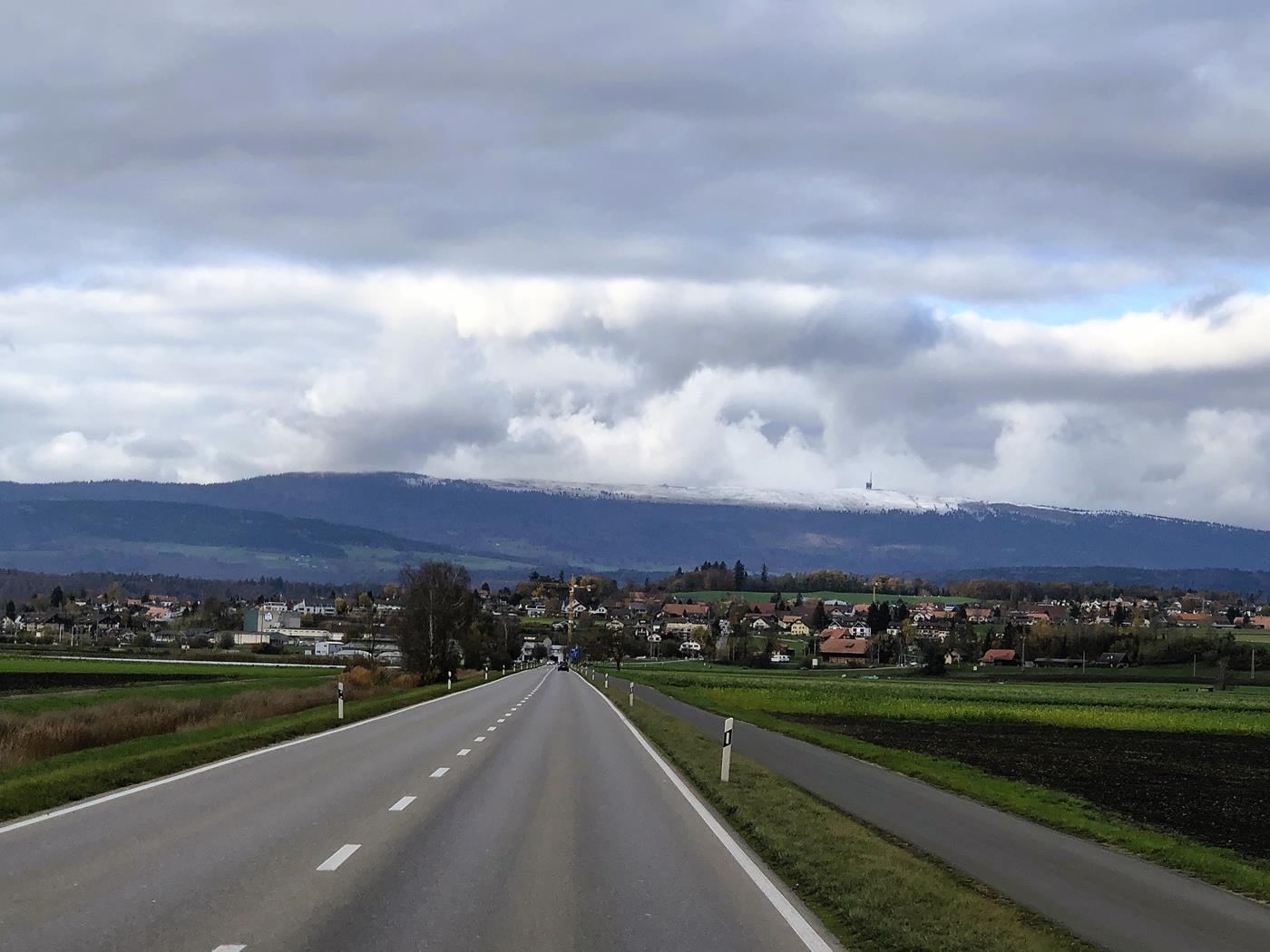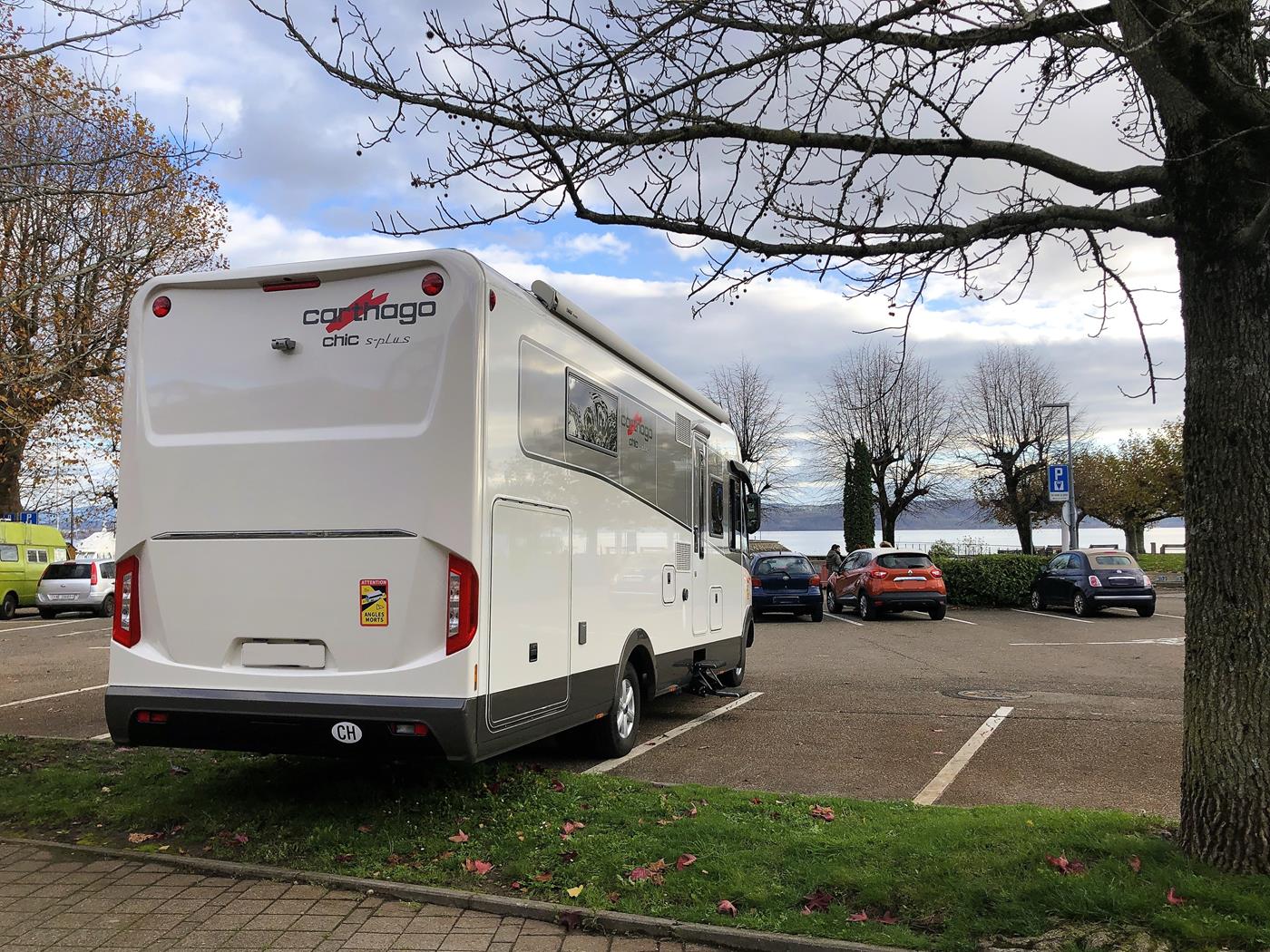 Schnell ist das Wohnmobil bereitgestellt und vollgetankt und so fahren wir bei starker Bewölkung los, in der Hoffnung, dass es am Neuenburgersee schöneres Wetter gibt. Auf dem Chasseral liegt schon der erste Schnee, aber in Richtung Neuenburg scheint das Wetter etwas besser zu werden.