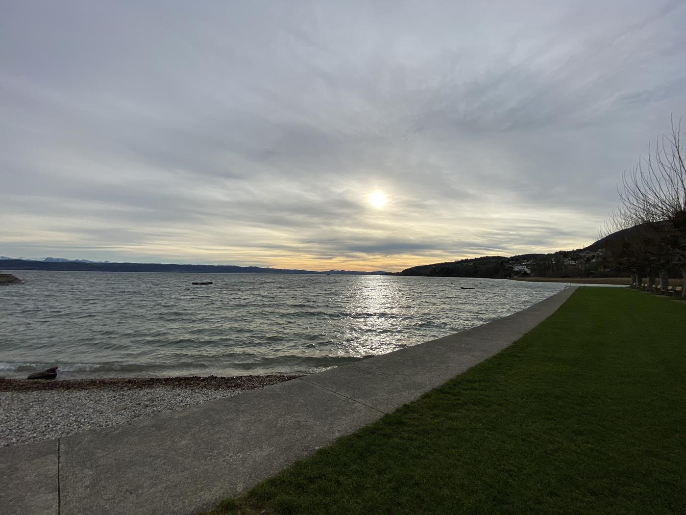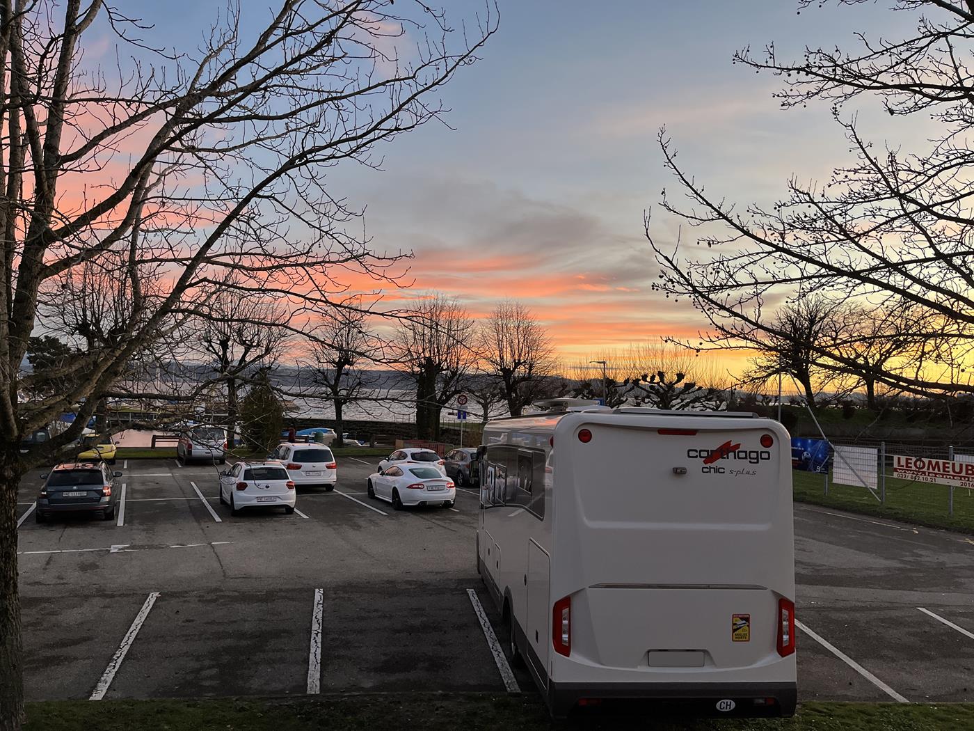 Der Parkplatz beim Bahnhof, bei welchem wir normalerweise immer einen freien Platz finden, ist heute rappelvoll und auch sonst gibt es für uns keine anderen Parkmöglichkeiten. Damit haben wir nicht gerechnet. Deshalb beschliessen wir weiter nach Grandson zu fahren, um später nochmals zu versuchen, einen Parkplatz zu finden.Auch beim zweiten Versuch scheitern wir und kehren zurück nach Grandson, wo wir übernachten. Der Parkplatz ist zwar idyllisch am See gelegen, aber leider direkt neben dem Bahngleis und so verbringen wir eine unruhige Nacht.