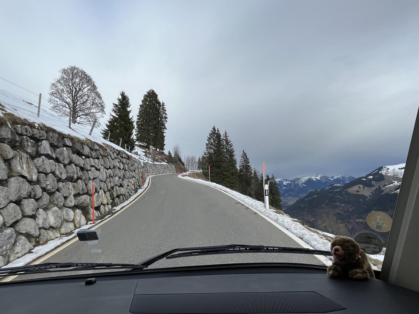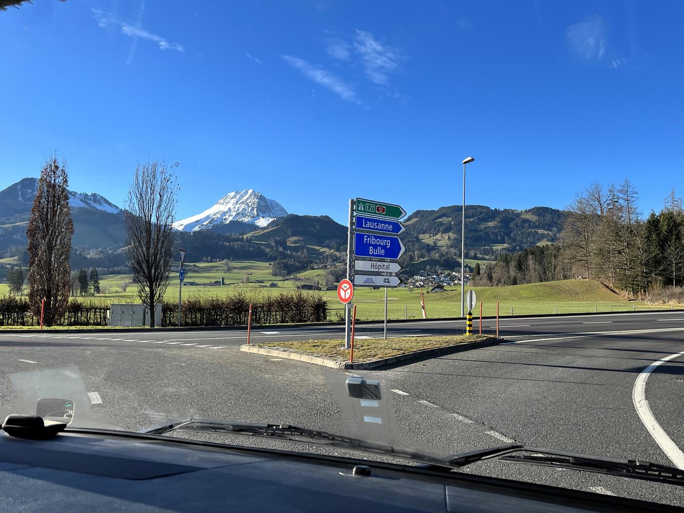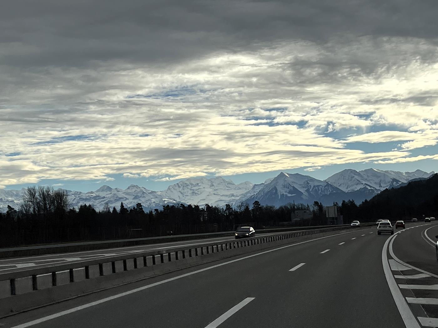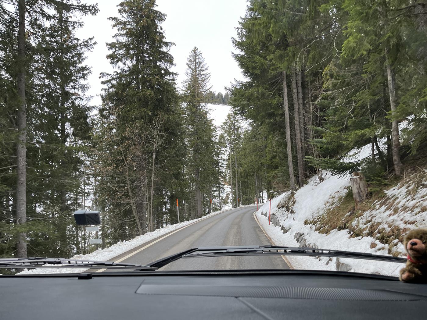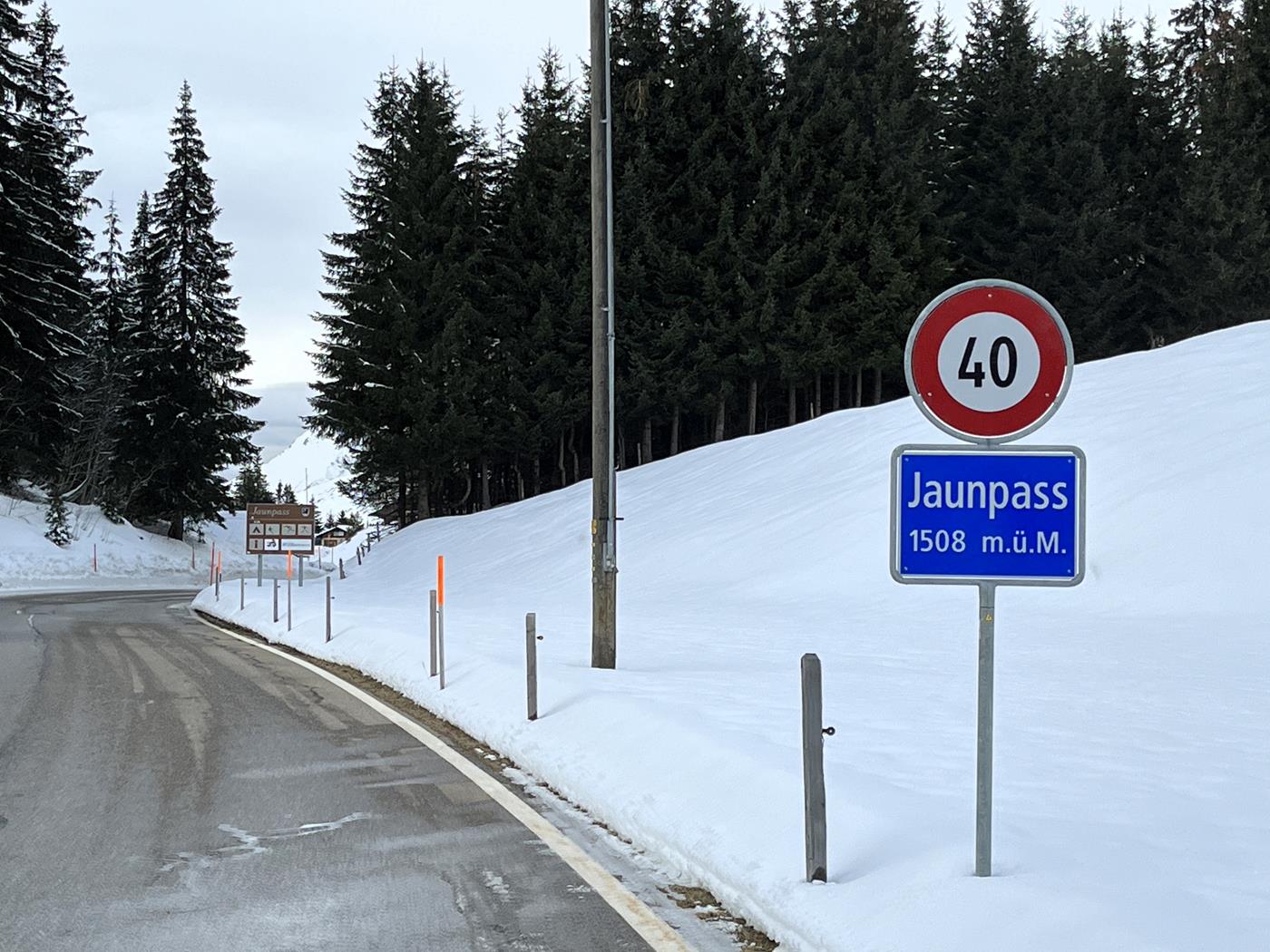 Der Blick Richtung Thun zeigt uns, dass wir dort das beste Wetter erwarten können. So fahren wir auf der A6 Richtung Thun, Spiez, Interlaken. Vor Spiez nehmen wir die Ausfahrt Richtung Wimmis und fahren dann auf den Jaunpass in die Winterlandschaft.