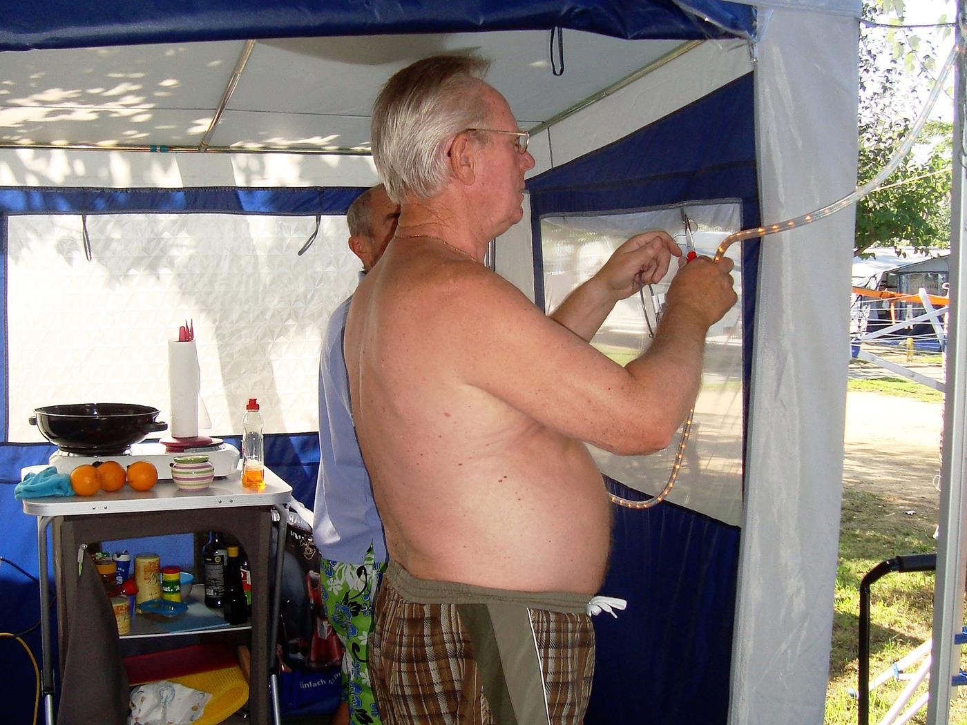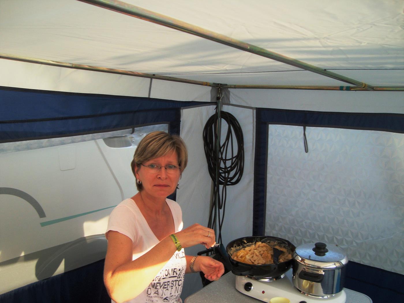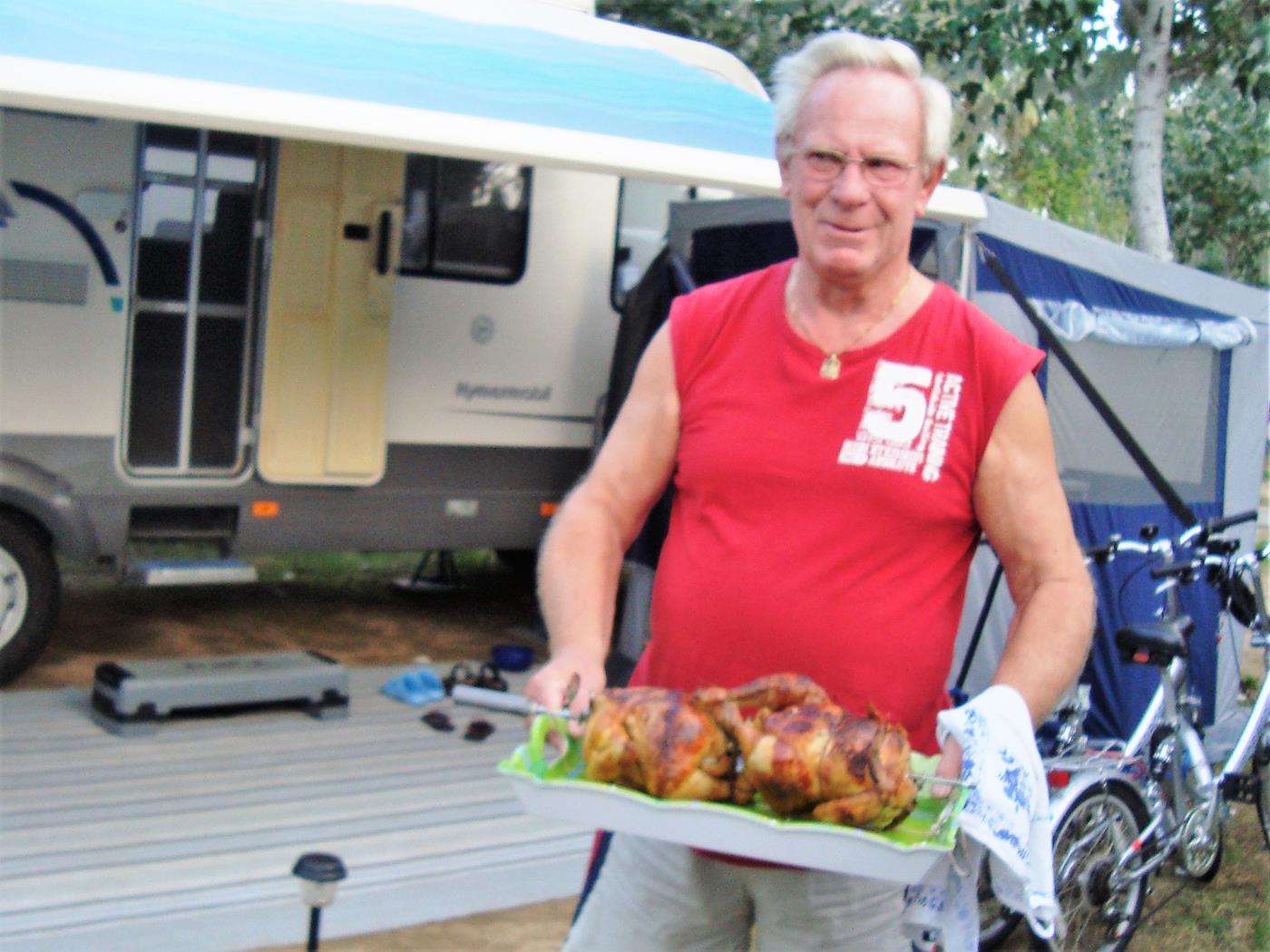 Es regnet nicht mehr, die Sonne scheint, aber es ist noch kühl - wir frühstücken im Wohnmobil. Anschliessend begrüssen wir unsere Freunde Wilma und Wolfgang und beziehen unseren reservierten Platz neben ihnen. Zu meinem Geburtstag, erhielt ich von unseren Kindern ein Küchenzelt, welches nun ebenfalls aufgebaut wird. Montag, 01.10.2012 Begrüssung rundherum