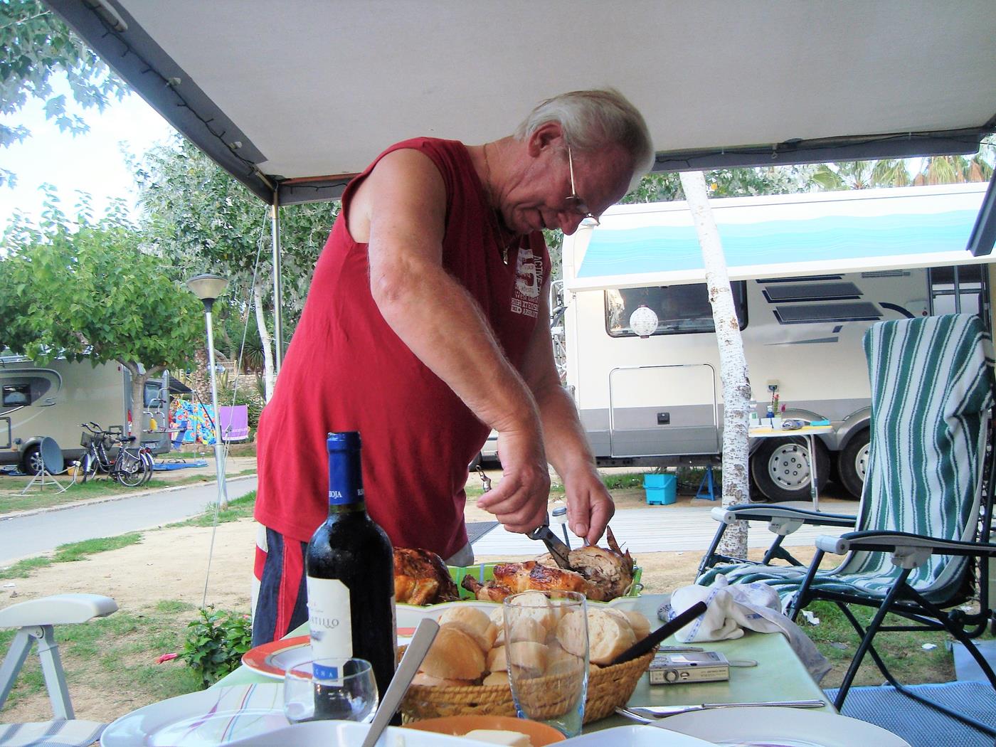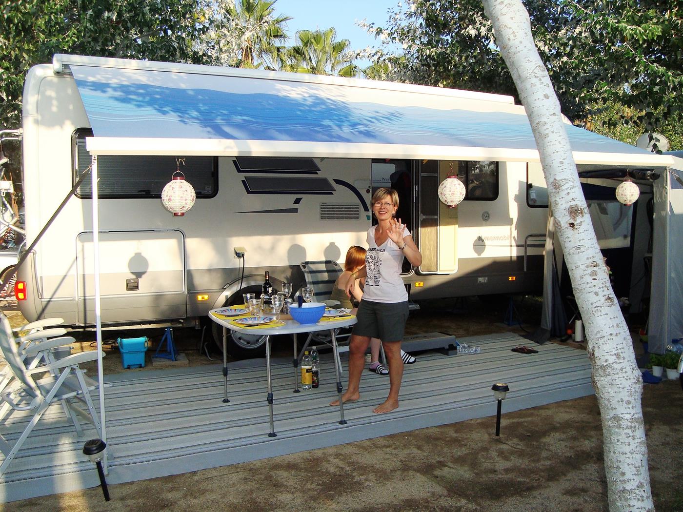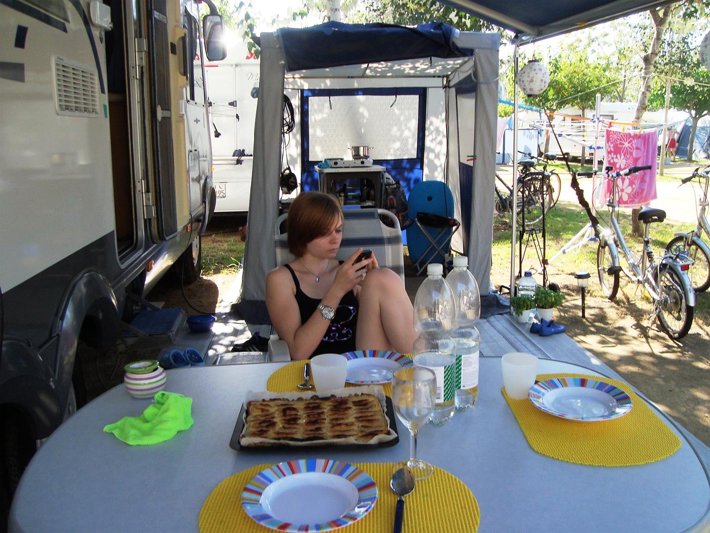 Etwa um 19:30 treffen wir auf dem Campingplatz Sanguli in Salou ein. Es giesst wie aus Kübeln und trotz Regenschirm bin ich völlig durchnässt als ich an der Rezeption eintreffe. Da unser reservierter Platz noch nicht frei ist, beziehen wir für diese Nacht einen provisorischen Platz. Wegen des starken Regens stelle ich nur die elektrische Verbindung her und so können wir ganz gemütlich eine Pizza backen, einen Film schauen und früh schlafen gehen, in der Hoffnung, dass das Wetter ab Sonntag besser sein würde.