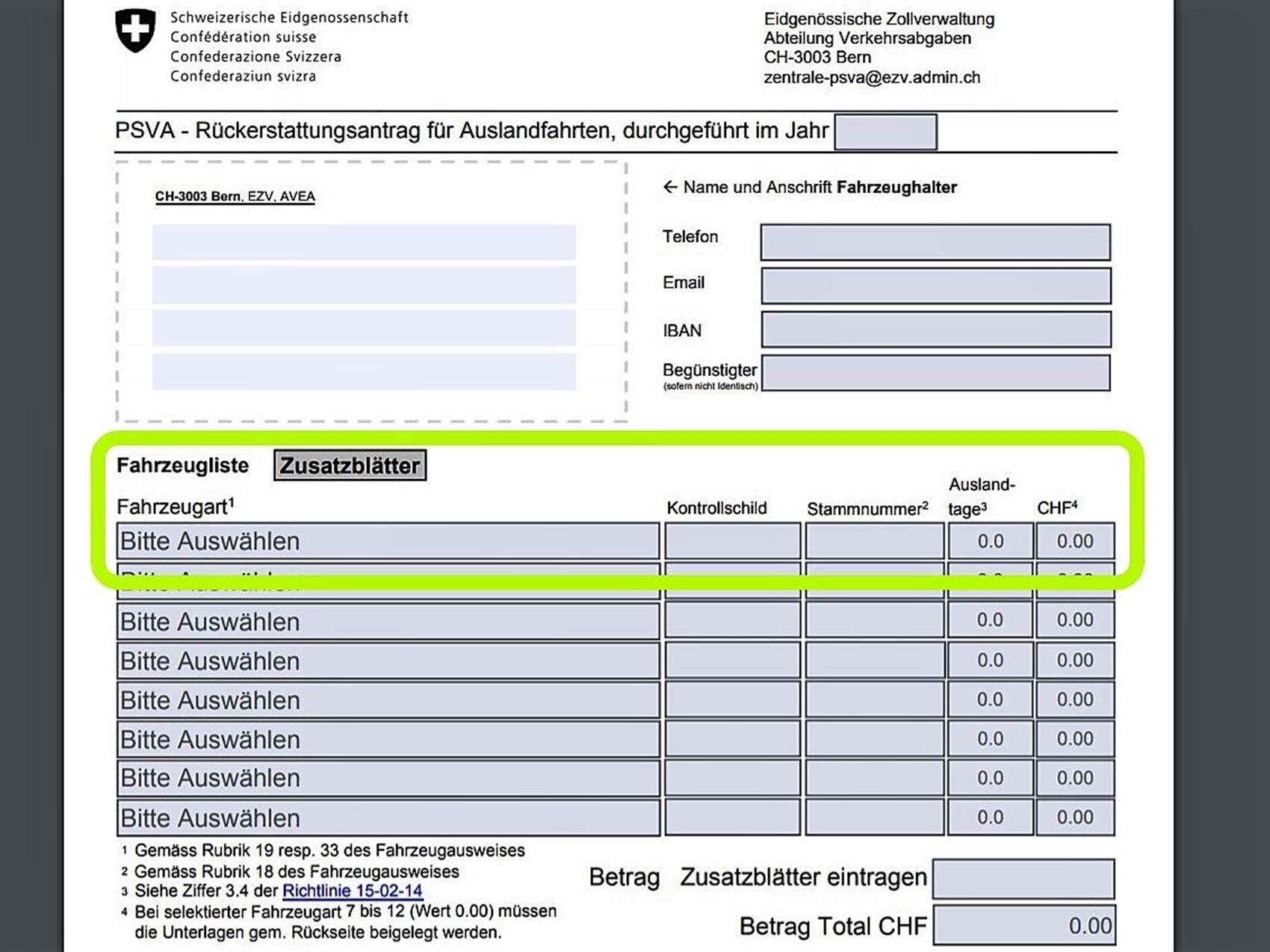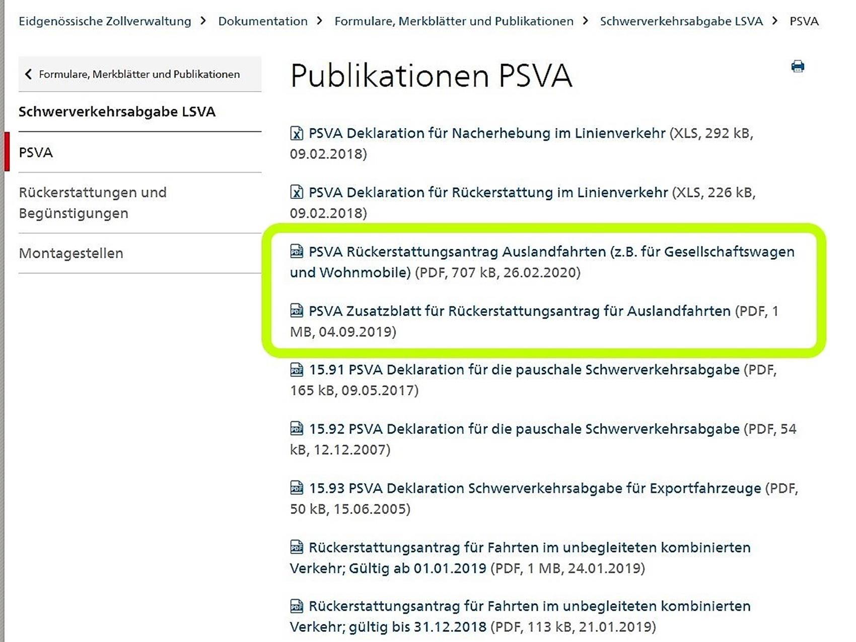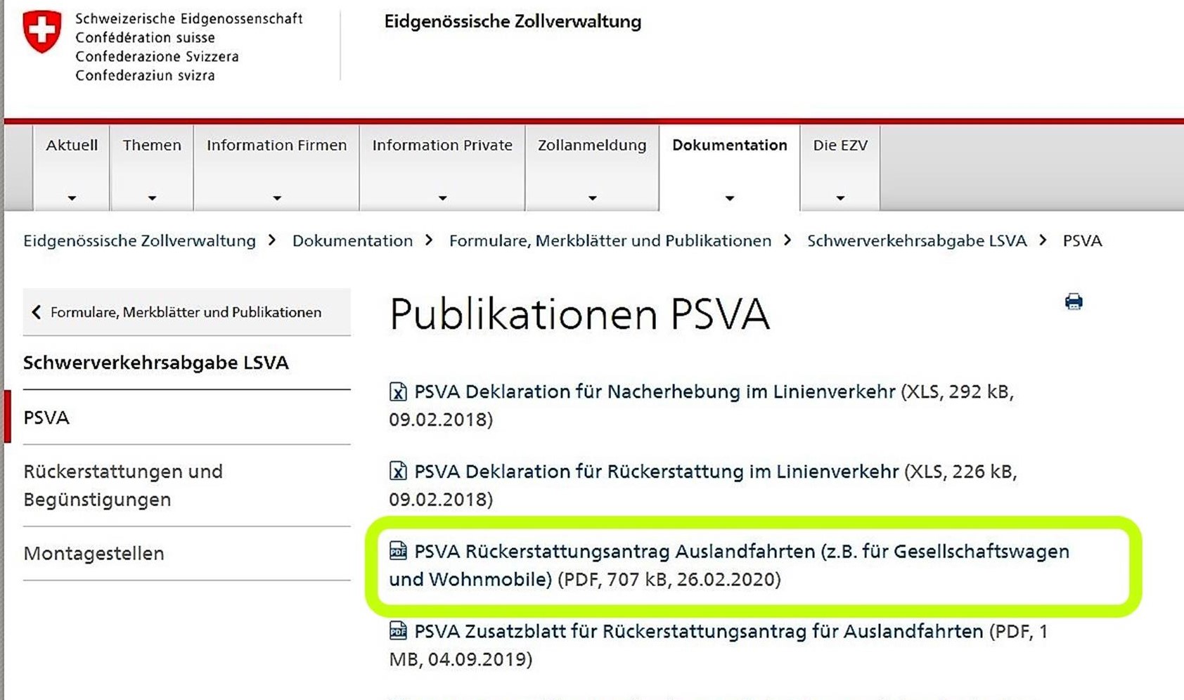Informationen zur Rückforderung der PSVA findet man auf der Homepage der Eidgenössischen Zollverwaltung, ebenso das Formular welches für die Rückerstattung auszufüllen ist. Die Prozedur für den Rückerstattungsantrag ist jetzt einfacher geworden. Es muss nur noch das Total der Anzahl Tage in denen das Fahrzeug im Ausland verkehrt hat, angegeben werden. Die Auslandfahrten müssen aber immer noch nachgewiesen werden können, sonst droht eine Busse.Wir freuen uns über deine Kommentare zu diesem Reisebericht.