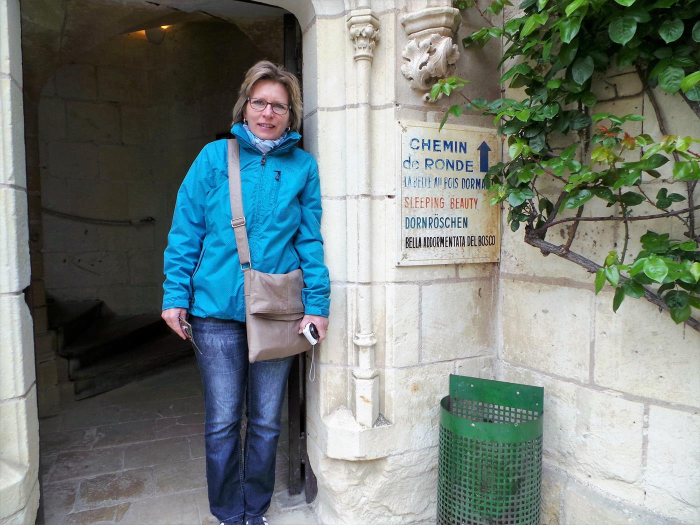 Heute fahren wir als erstes zum „Dornröschenschloss“. Das Schloss Ussé liegt in der französischen Ortschaft Rigny-Ussé etwa zehn Kilometer nord-östlich von Chinon am südlichen Ufer des Indre, einem Seitenfluss der Loire. Das Schloss ist ein beliebtes Ausflugsziel am Rand des Forstes von Chinon. Es soll den französischen Schriftsteller Charles Perrault bei einem seiner Aufenthalte zu seiner Erzählung "La belle au bois dormant" (deutsch: Die schlafende Schöne am Wald) inspiriert haben.Für die Besichtigung bezahlen wir € 5.50 pro Person und lassen uns mitten in das Märchen versetzen. Das Wetter wird immer kühler und nasser und so fahren wir etwas lustlos nach Montsoreau, dem schönsten Dorf Frankreichs. Das hat uns nicht überzeugt und es ist uns nicht klar, warum dieses Dorf als das Schönste bezeichnet wird. Auf dem Weg zum Schloss Saumur tanken wir bei einem Carrefour und kaufen auch noch unser Mittagessen ein.