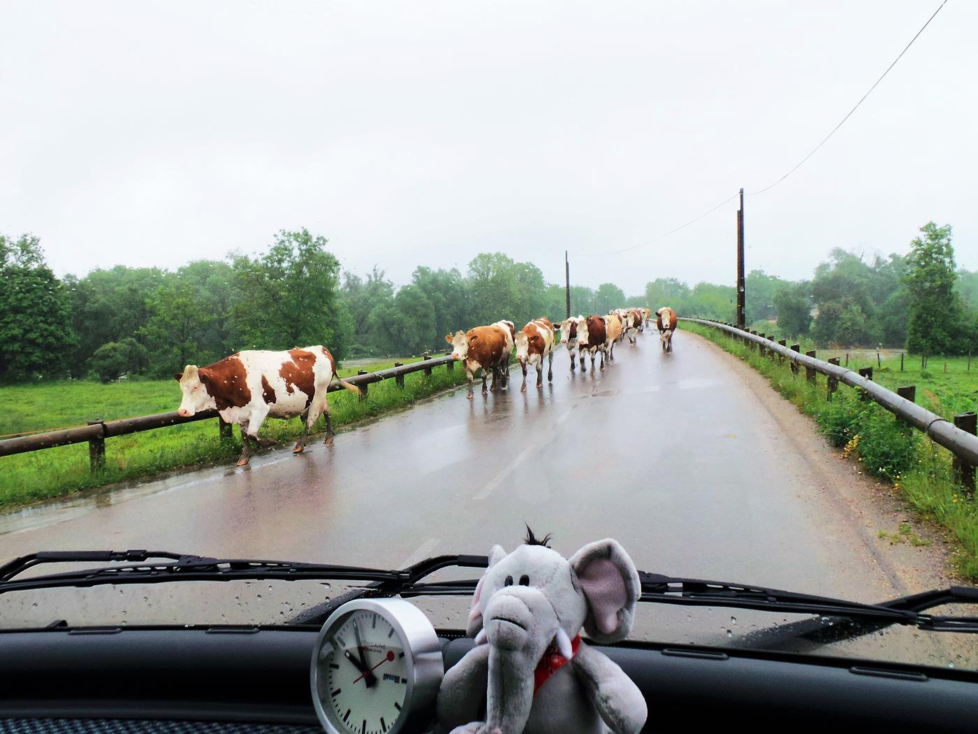 Das Wetter ist so hundslausig, dass wir uns freuen schon bald zu Hause zu sein. Bei Le Clerc in Houtaud kaufen wir noch unser Mittagessen ein und füllen den Tank.