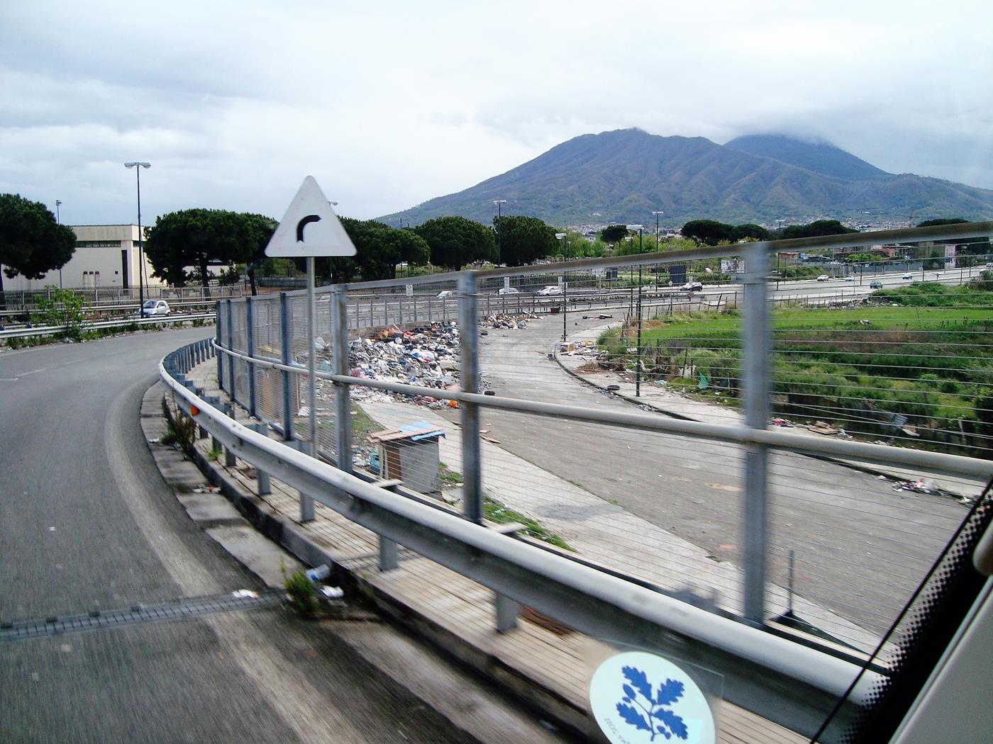 Die Müllberge in Napoli sind jedenfalls leichter zu finden als die Strasse auf den Vesuv. Interessant ist auch die Müllentsorgung, die wir auf dem Weg nach Napoli beobachten können. Auf den Feldern wird der Müll in Riesenbergen aufgetürmt und anschliessend mit Erde zugedeckt und darauf Gras angesät. Am Schluss sieht es dann aus, wie natürliche Hügel, die in der Landschaft stehen. Die nachfolgenden Generationen werden sich dann der hier erschafften Umweltkatastrophe annehmen dürfen.Der von uns eingeschlagene Weg führt leider nicht auf den Vesuv, sondern irgendwo ins Niemandsland am Fusse des Vesuvs. Bei einem Ausflugsrestaurant mit einem grossen Parkplatz will ich daher wenden und versuchen unsere exakte Position festzustellen. Da hält ein freundlicher Italiener neben uns und stellt sich als Guide vor. Er sagt, dass wir ihm folgen sollen und er uns den Weg auf den Vesuv zeigen würde. An einem Waldrand hält er an und sagt, dass wir ab hier zu Fuss weitergehen müssten. Monika weigert sich mit Händen und Füssen da mitzugehen. Ich einige mich mit dem Guide, mir den Weg zu zeigen wo ich mit dem WoMo auf den Vesuv fahren kann – dafür verlangte er € 20. Wir wenden die Fahrzeuge und ich fahre ihm wieder hinterher. Er fährt zu schnell und ist plötzlich verschwunden. Die Stimmung wird schlechter, das Wetter auch und der Vesuv kann mir nun eigentlich gestohlen bleiben. So fahren wir etwas planlos umher und finden ungewollt die Strasse die auf den Vesuv führt.Auf dem Vesuvio ist es kalt und es regnet. Für das Parkieren müssen wir € 5.00 bezahlen und um zum Krater zu laufen müssten wir € 10.00 pro Person bezahlen. Darauf verzichten wir, denn wir könnten da sowieso nichts sehen. Wir entscheiden uns, weiter nach Pompei zu fahren.