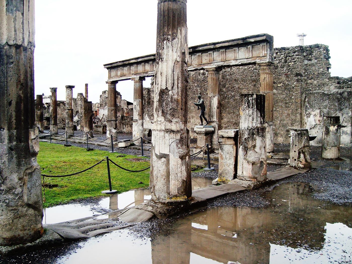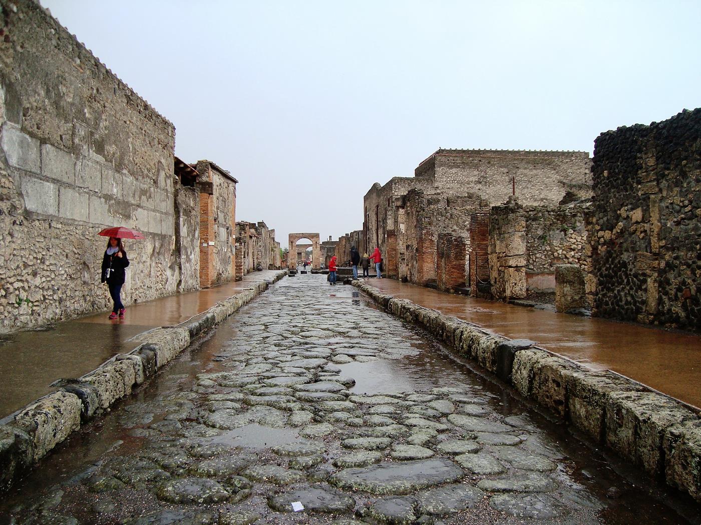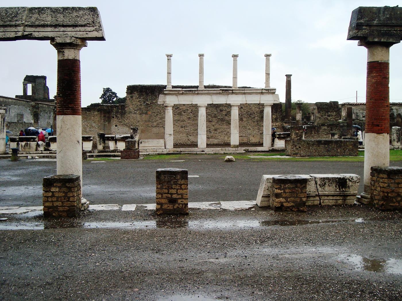 Wir fahren auf den Camping Zeus in Pompei. Der Campingplatz liegt direkt vor den Ruinen und ist daher der ideale Ausgangspunkt, um Pompei zu besichtigen. Für die Besichtigung von Pompei müssen wir nichts bezahlen da 'Kulturwochen' sind und alle Museen, etc. gratis besichtigt werden können. In diesem Punkt haben wir Glück, jedoch wettermässig immer dasselbe: es schifft und schifft. Gegend Abend wird das Wetter zum Glück etwas besser.