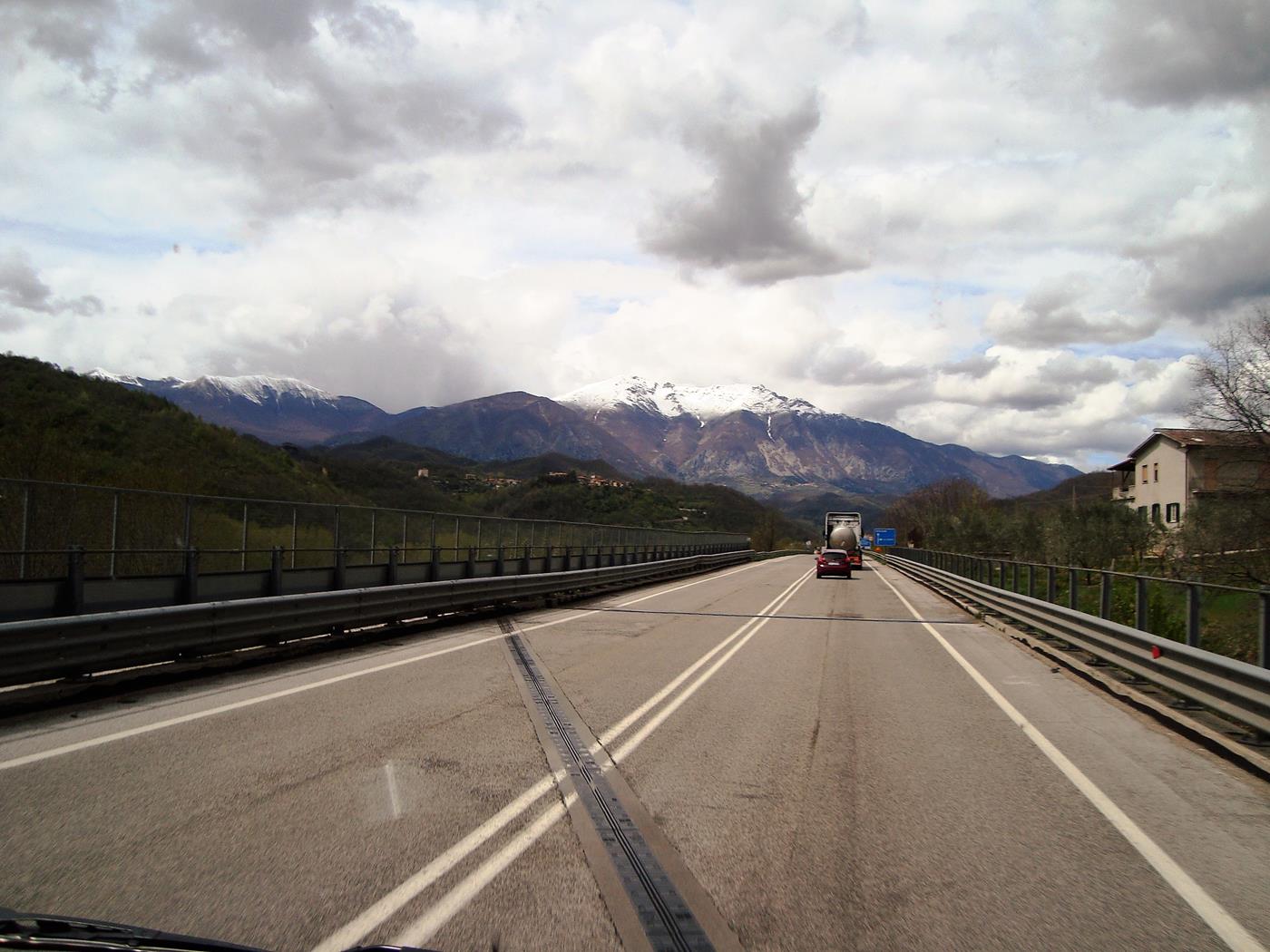 Unsere Route führt uns durch die Berge (Abruzzen) nach Pineto. Das Wetter hält sich nicht schlecht, es regnet wenigsten nicht ununterbrochen.