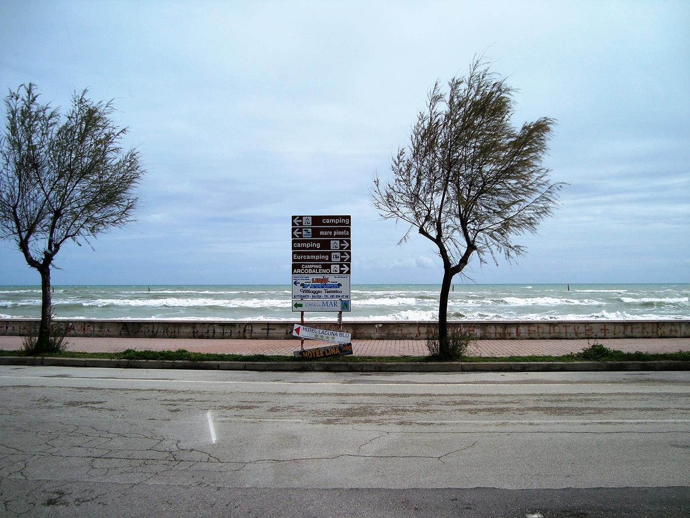 Im ACSI-Führer haben wir in Pineto einen Campingplatz gefunden, welcher schon geöffnet haben sollte. Wir finden jedoch keine geeignete Zufahrt. An der Bahnlinie hat es viele Unterführungen, die Maximalhöhe ist aber 190cm oder weniger. Wir fahren weiter nach Norden und finden nach einer Weile eine passende Unterführung. Die Wegweiser zeigen auch eine grosse Auswahl an Campingplätzen – die sind aber alle noch geschlossen.An der Strandpromenade treffen wir ein italienisches Ehepaar, das auch mit dem Wohnmobil unterwegs ist. Sie erklären uns, dass sie öfters hier auf dem Marktplatz übernachten würden und wir sollen ihnen doch folgen, sie würden uns zeigen wo das ist. Wir folgen ihnen und stellen uns ebenfalls neben die Sporthalle (ganz in der Nähe des Polizeipostens). Monika kocht Ravioli con prosciutto crudo und Spaghetti con la salsa d’Irene, und zum Dessert gibt es noch Mango. Buonissimo. Nach einem Schwatz mit Giovanni und Giuseppina gehen wir früh schlafen.