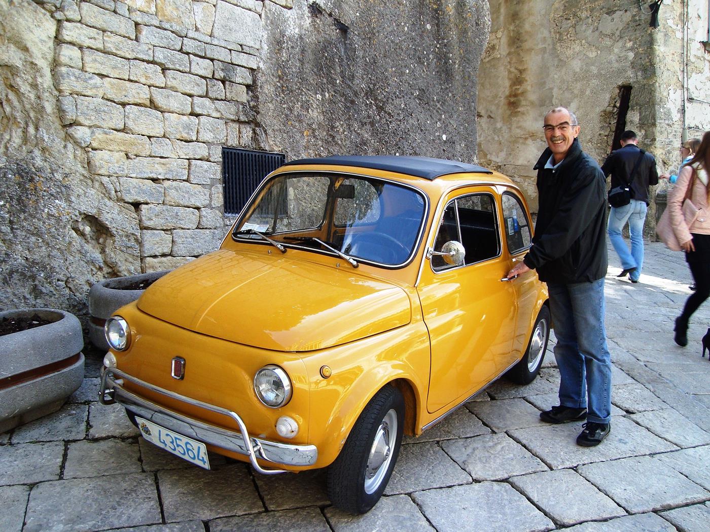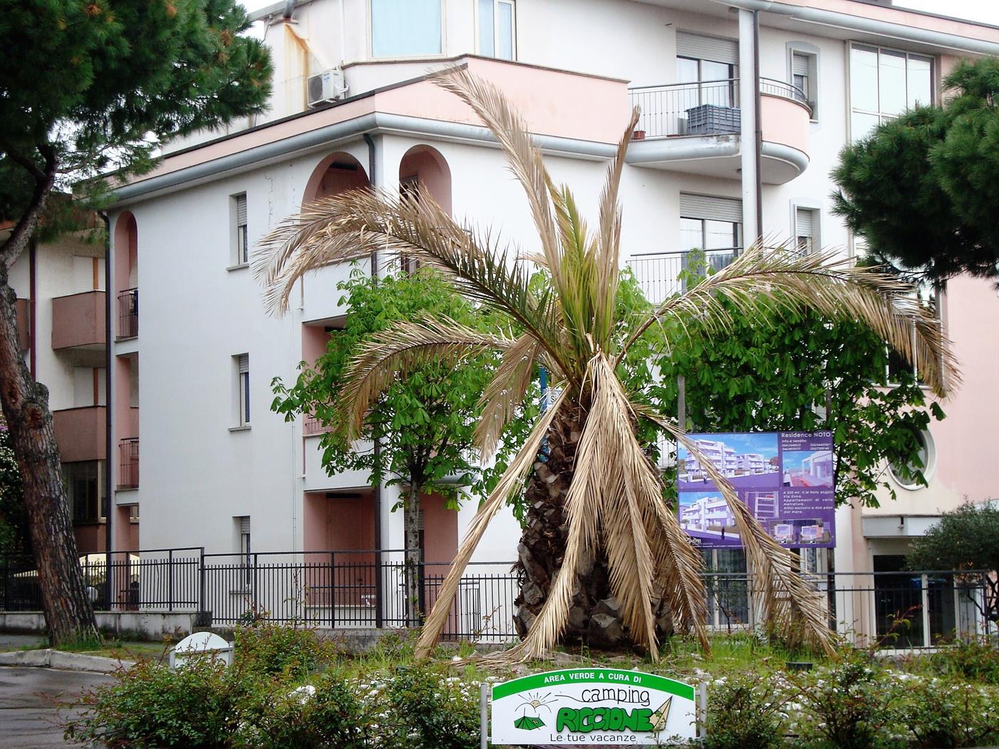 In San Marino bummeln wir durch das Städtchen und essen im Domus coffèe shop auf der Terrasse eine Pizza. Es gibt immer mehr Wolken und wir müssen uns beeilen damit wir noch trocken zum Wohnmobil kommen. Den Cinquecento hätte ich schon gerne mitgenommen. Nach der Besichtigung von San Marino fahren wir auf den Campingplatz Riccione. Es regnet wieder. Für den Platz bezahlen wir € 16.00. Am Abend marschieren wir ins Städtchen, denn wir möchten wieder einmal die italienische Küche geniessen. Es ist etwas trostlos, die Palmen sehen schlecht aus, der Strand ist noch nicht ausgerollt, es ist kalt und die meisten Restaurants haben noch geschlossen – einfach zum Heulen.Wir finden doch noch ein Restaurant und essen Spaghetti al Pomodoro, Sardinas und Coteletta Milanese con Patate fritte, dazu ein vino rosso. Der Kellner ist sehr freundlich und freut sich, mit uns sein Französisch trainieren zu können.
