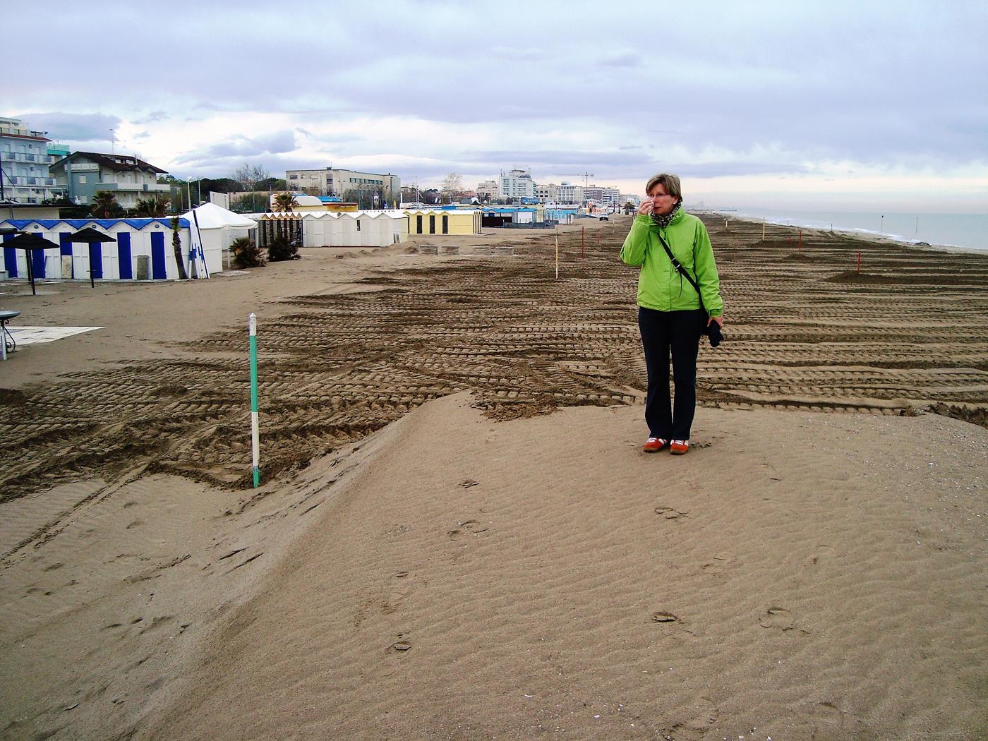 Wir haben gut geschlafen und nach dem Frühstück besuchen wir noch den Markt. Wir kaufen Tortellini, Biscotti und Pane, dann fahren wir der Küste entlang Richtung Rimini.Das Wetter bessert sich zusehends und wir sehen nun sogar blauen Himmel und die Sonne. Endlich wird es auch etwas wärmer.