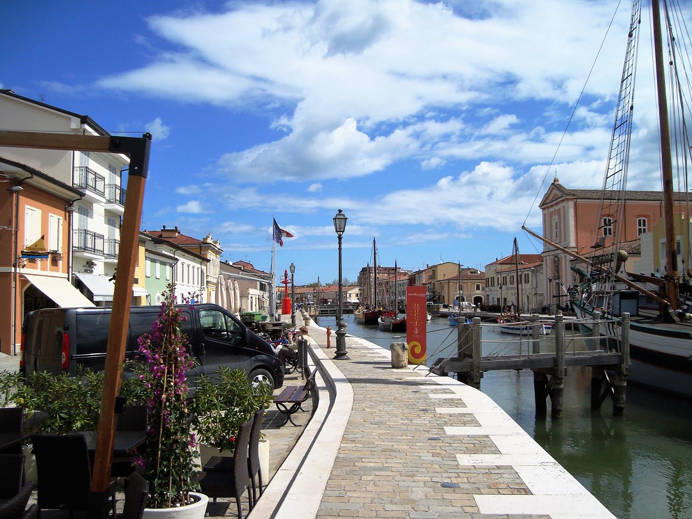 Wir fahren durch Rimini Richtung Ravenna. Von der Strasse aus erblicken wir einen Stellplatz in Cesenatico. Dort lassen wir unser WoMo stehen und spazieren in das schöne Hafenstädtchen.