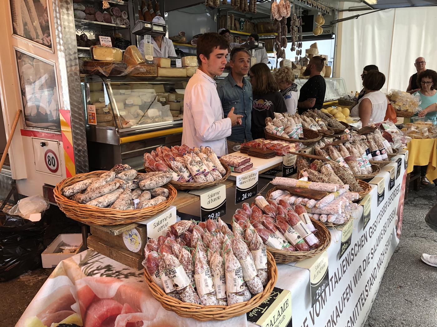 Heute ist Markttag in Cannobio! Das Frühstück nehmen wir unterwegs auf den Weg zum Markt ein. Es ist wieder ein wunderbarer Tag, um über den Markt zu schlendern. Anschliessend setzen wir uns an die „Front“ bestellen etwas zu Trinken und geniessen es dem Markttreiben zuzuschauen.