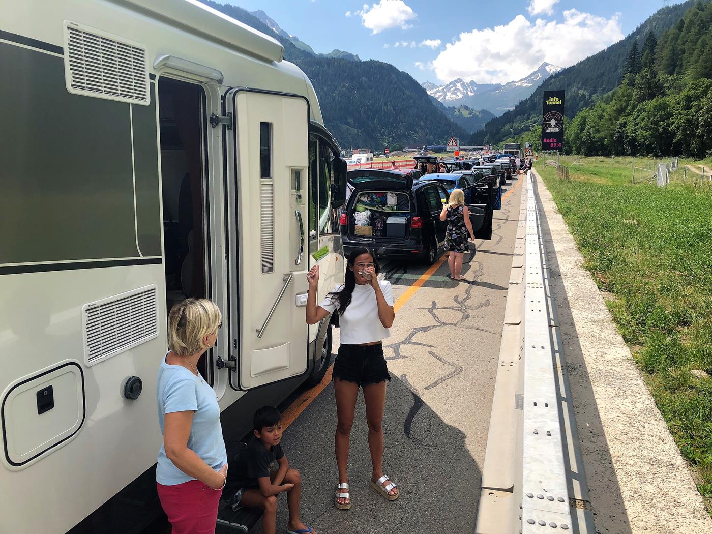 Frohen Mutes fahren wir auf der Autobahn Richtung Gotthardtunnel, es hat wenig Verkehr und wir freuen uns, frühzeitig zu Hause anzukommen. Aber oh je, zu früh gefreut, nach der letzten Ausfahrt vor dem Gotthardtunnel ist Schluss. Der Tunnel wird gerade wegen eines Unfalls gesperrt und wir sitzen gefangen in der Kolonne.So kommen wir 6 Stunden später, um 18:35Uhr, geschafft zu Hause an. Da es immer noch sehr heiss ist, verschieben wir das Ausräumen des Wohnmobils auf den nächsten Tag.