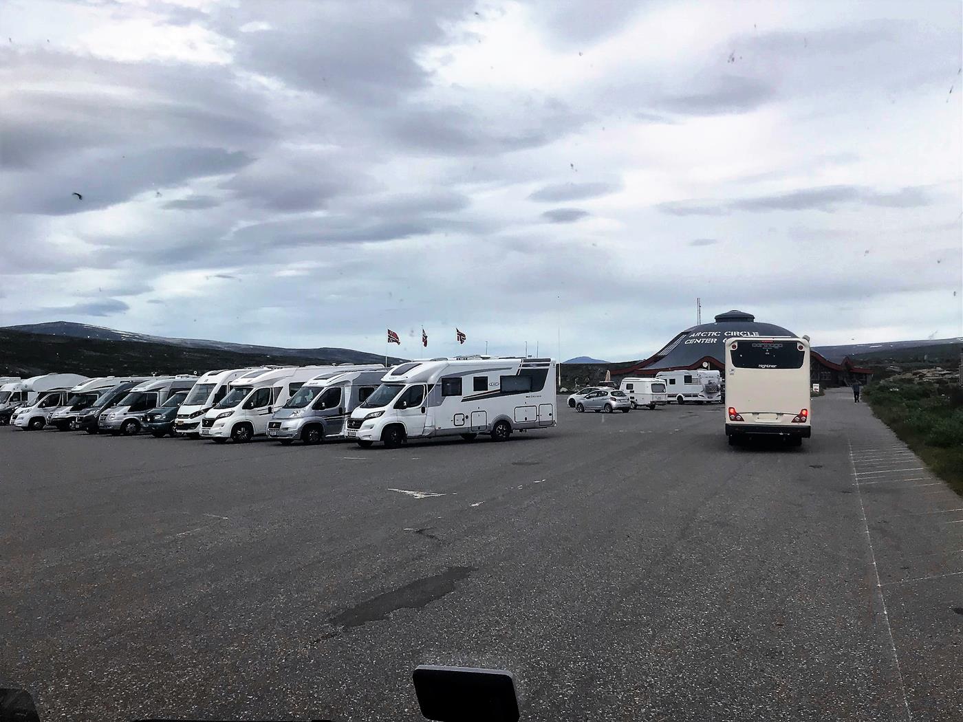 Unsere Reise führt uns weiter der E6 entlang. Als Etappenziel haben wir uns den Polarkreis vorgenommen. Etwa 80 km nördlich der Stadt Mo i Rana (Nordland) verläuft in Norwegen in einer öden Gebirgslandschaft der Polarkreis (Polarsirkelen). Diese unsichtbare Linie, die auf 66,5 Grad nördlicher Breite um die Erde verläuft, ist ein Besuchermagnet, der Jahr für Jahr mehr Touristen anzieht. Am Tag der Sommersonnenwende (22. Juni) geht die Sonne am Polarkreis nicht unter.