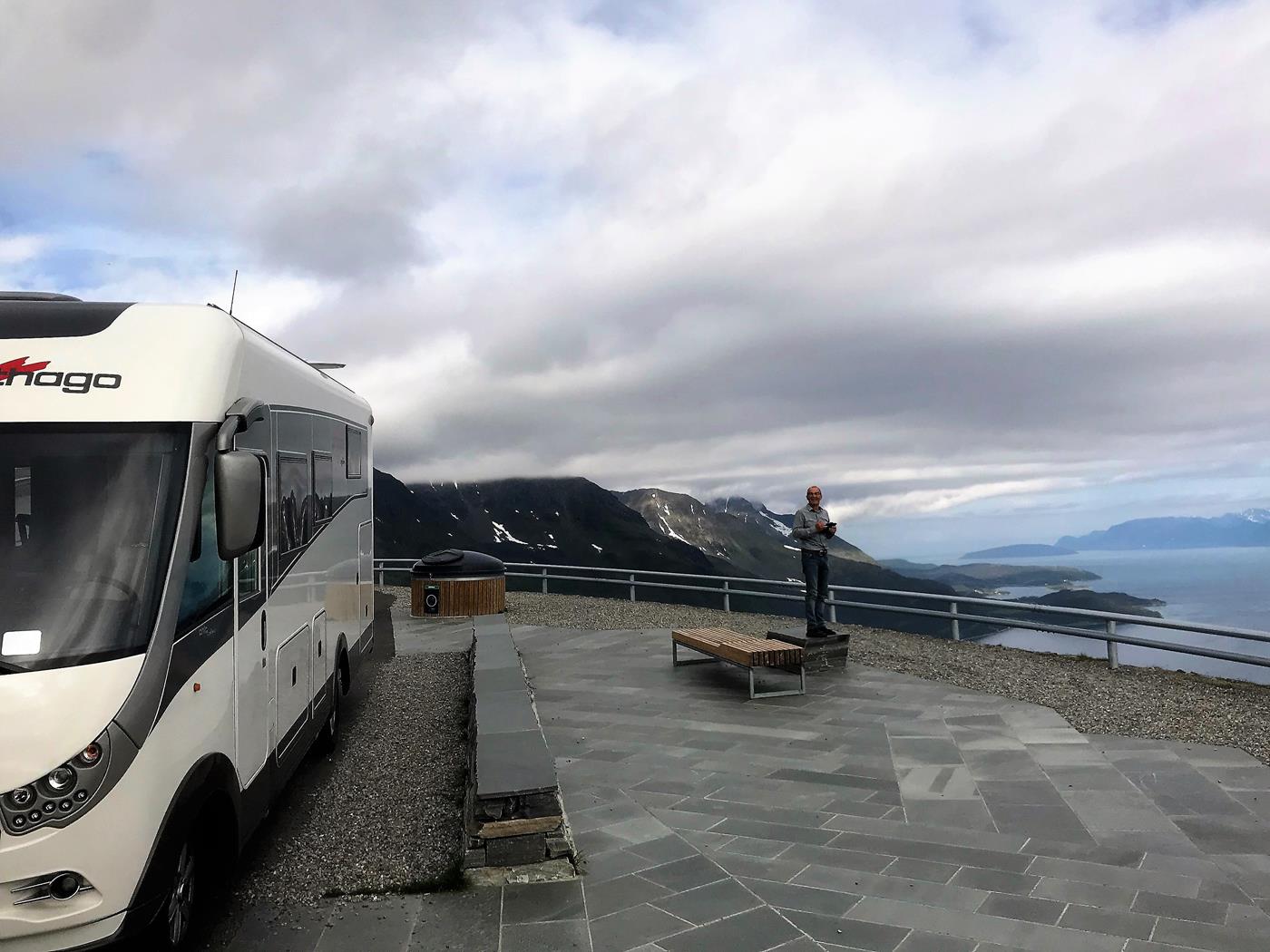Unterwegs auf der E6 können wir noch den Bau der Halogaland-Brücke anschauen. Wie die meisten Brücken in Norwegen, wird auch diese durch die "Sichuan Road and Bridge Group" aus China erstellt. Die Arbeiten zum Bau der Hängebrücke, die den Rombaksfjord überquert begannen 2013. Am 9. Dezember 2018 wird die zweitlängste Hängebrücke, Norwegens, die Hålogalandsbrua, eröffnet. Sie ist mit einer Länge von 1145 Meter nach der Hardangerbrücke die zweitlängste Brücke des Landes.