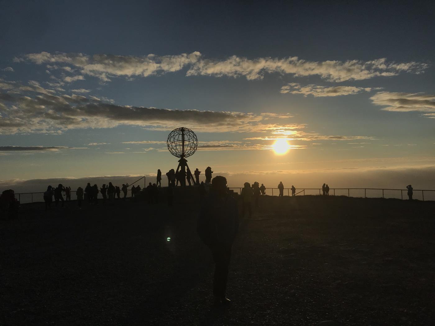 Endlich sind wir am Nordkap angekommen und die Sonne scheint! Wir bezahlen NOK 550.00 für den Eintritt und die Übernachtung auf dem bereits gut gefüllten Stellplatz. Jetzt können wir die Mitternachtssonne bestaunen, denn vom 14. Mai bis zum 29. Juli bleibt die Sonne immer über dem Horizont, während sie vom 20. November bis zum 22. Januar überhaupt nicht aufgeht. Wegen dem sehr starken Wind verbringen wir eine unruhige Nacht. Das Wohnmobil wackelt wie verrückt.