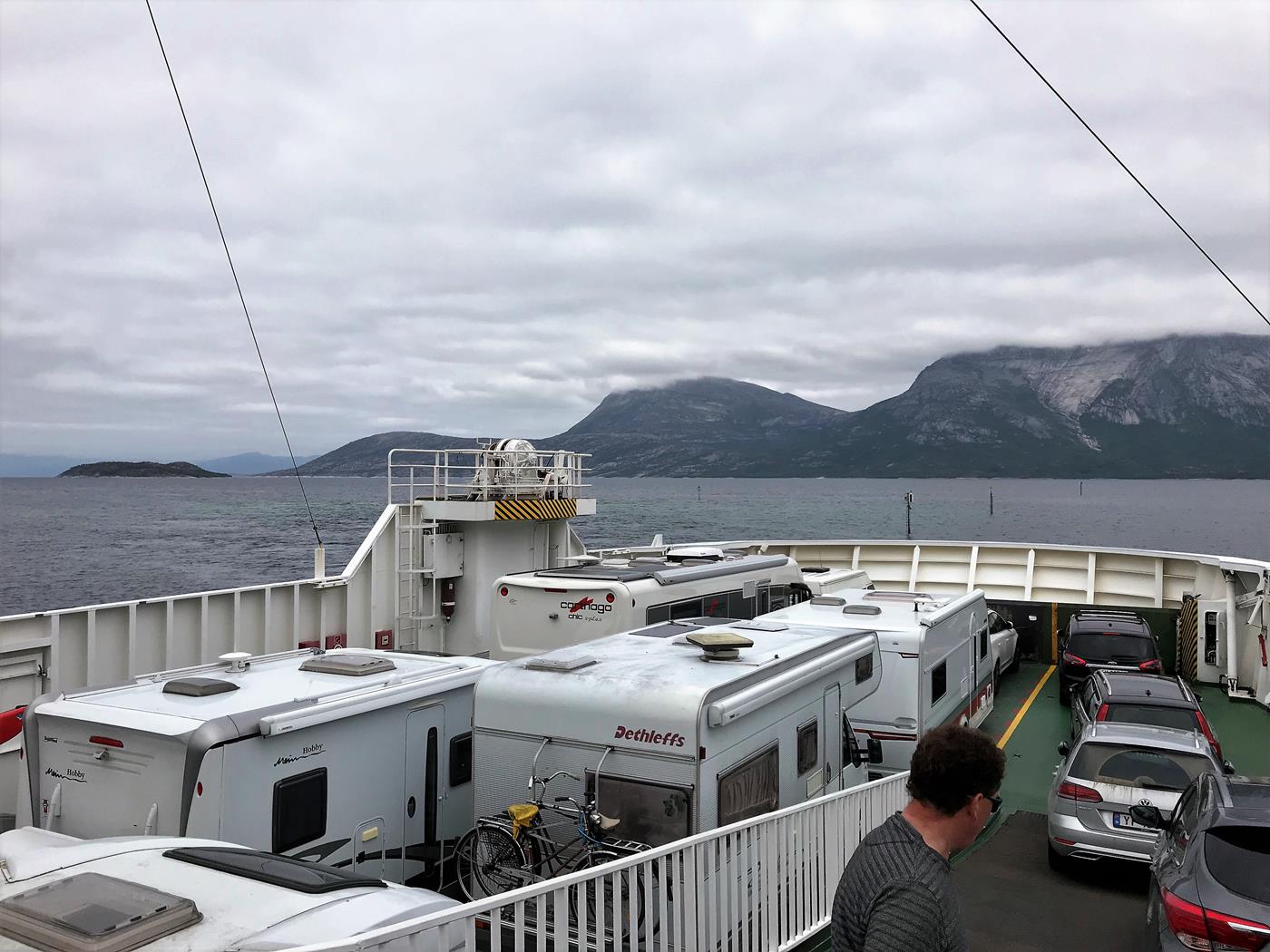 Wir haben eine angenehme Nacht verbracht, und da wir früh schlafen gingen, sind wir heute früher als üblich aufgestanden. Um 08:30Uhr fahren wir los Richtung Bognes wo wir die Fähre nach Lødingen nehmen. Die Überfahrt dauert rund eine Stunde und kostet NOK 763.00 (Wohnmobil über 8m und 2 Personen).