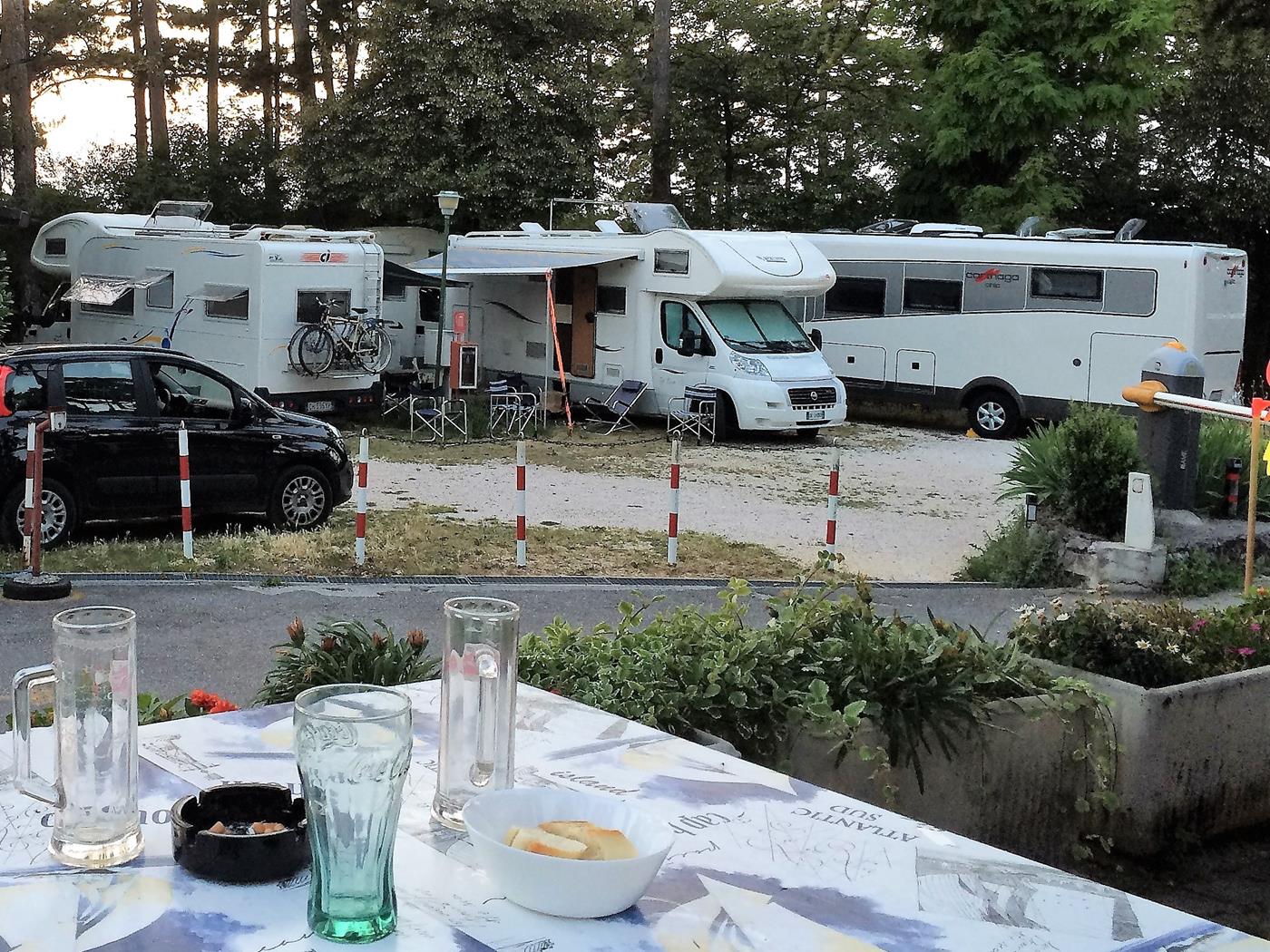 Im Wohnmobilforum haben wir einen Beitrag gelesen wo der CP Obelisco bei Triest beschrieben wurde. Wir entscheiden uns, diesen Platz mal anzufahren und nach einigem Hin und Her haben wir den Weg auch gefunden. Die Zufahrtsstrasse ist schmal, kurvig und steil, darum ist die Fahrt ziemlich aufregend, aber es kommt uns glücklicherweise kein Auto entgegen. Der Campingplatz ist schon voll besetzt, aber weil wir es bis hierher geschafft haben bekommen wir für eine Nacht doch noch einen Platz. Dieser Campingplatz ist für grosse Reisemobile nicht geeignet.