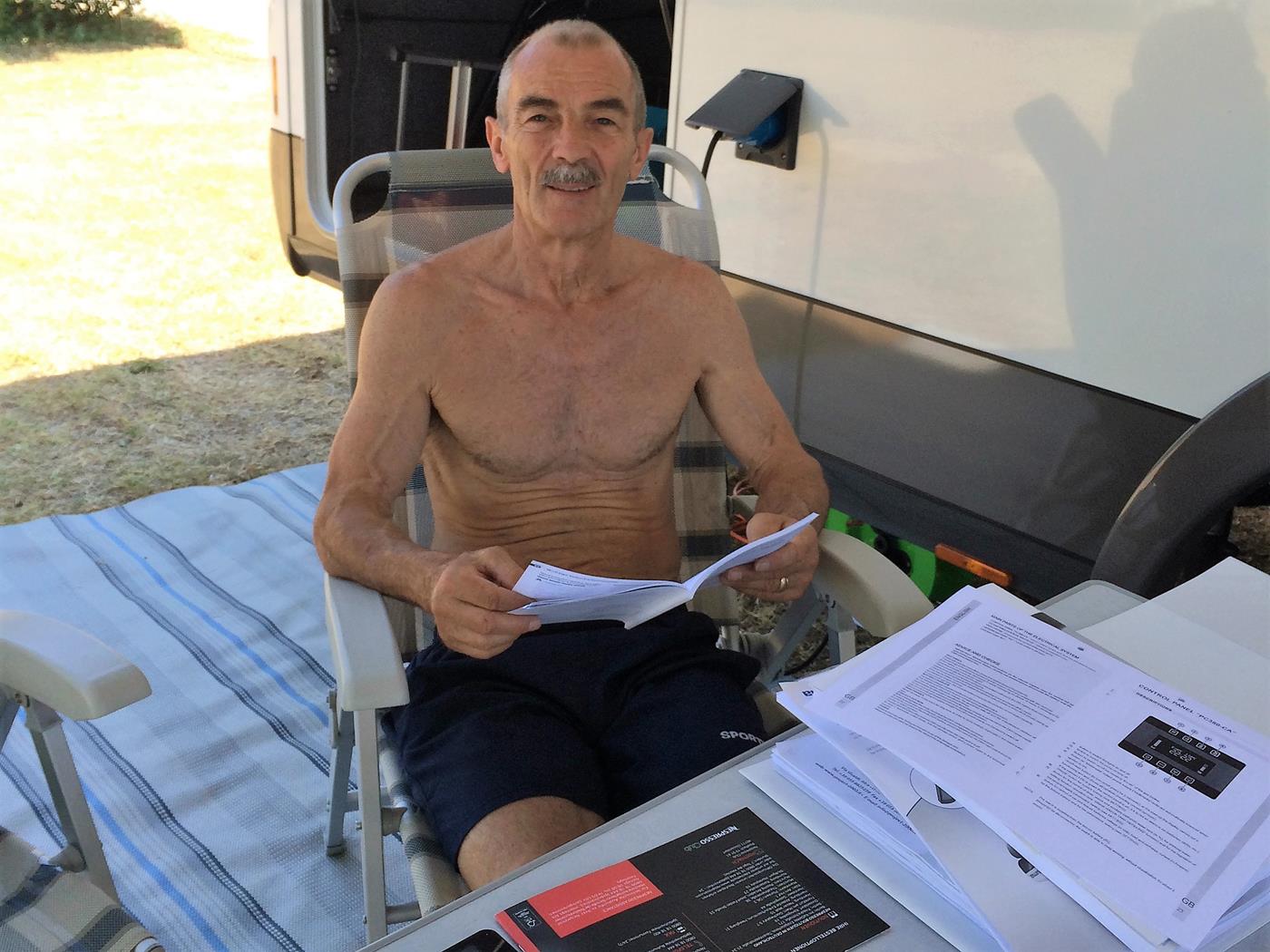 Der Andrang ist gross und das Anmeldeprozedere langwierig, aber nachdem wir das geschafft haben suchen wir uns einen schönen Platz wo wir uns einrichten. Geir und Tove stellen ihr neues Luftzelt auf. Wir sind davon so begeistert, dass wir gleich eines bestellen und zu unseren Freunden in England liefern lassen, damit sie es uns im Herbst nach Spanien mitbringen können. Dieses komplizierte Vorgehen müssen wir wählen, weil es keine andere Möglichkeit gibt ein solches Zelt zu erhalten.