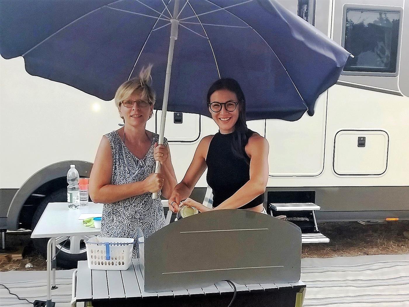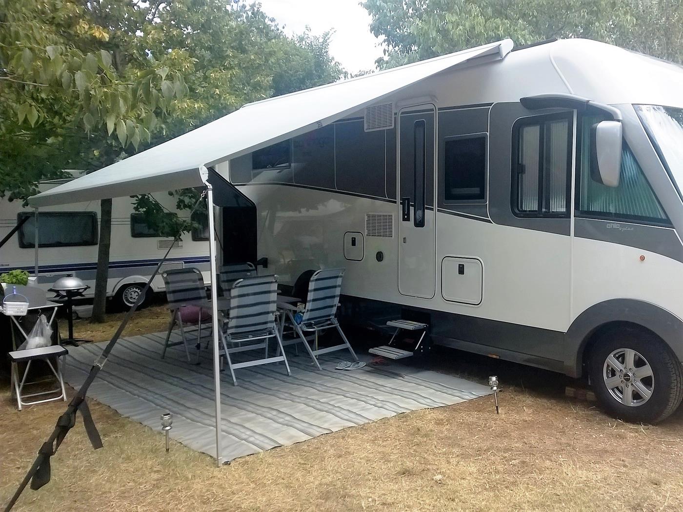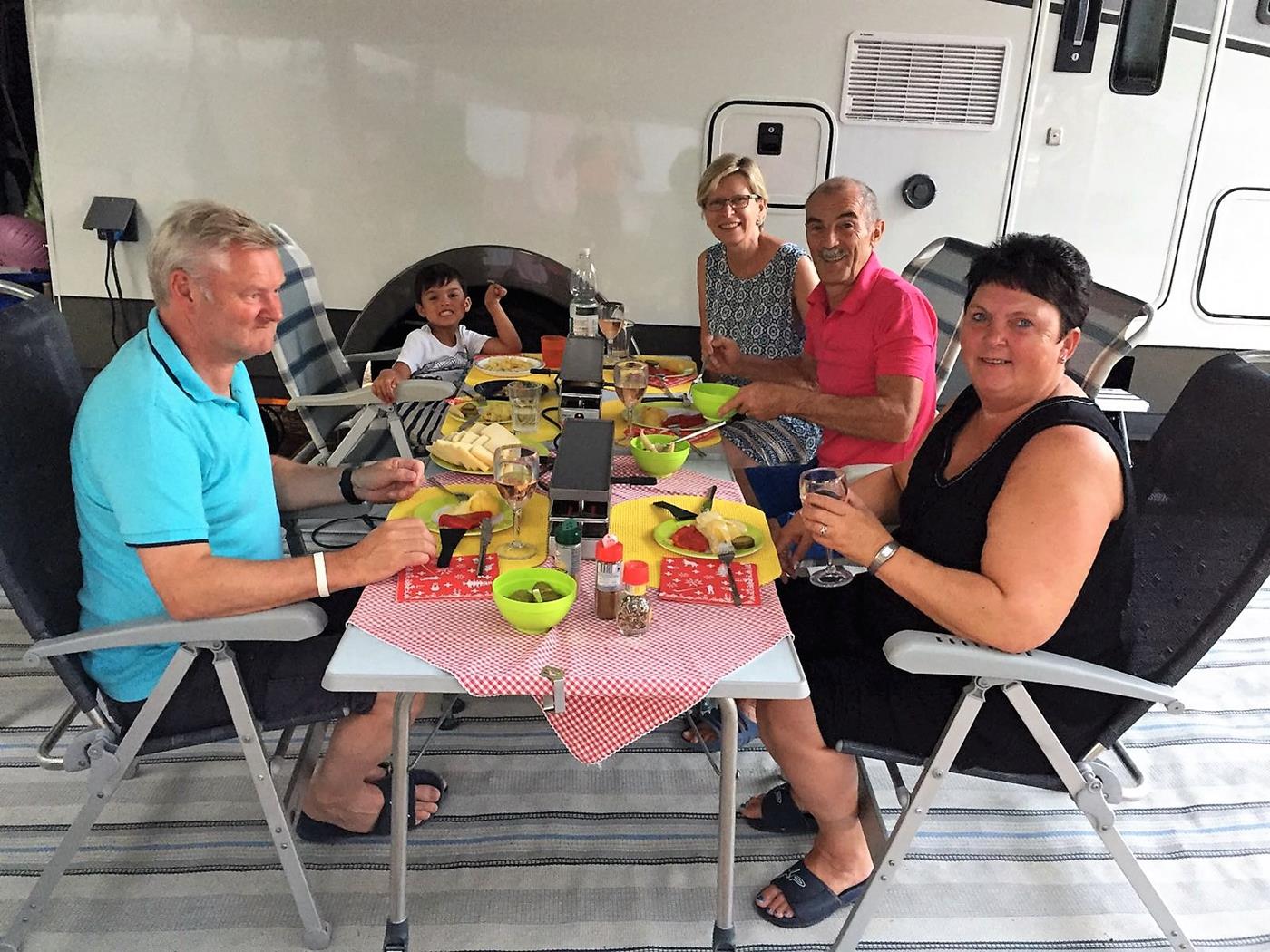 Jetzt geniessen wir das schöne und heisse Wetter auf dem Campingplatz Polari in Rovinj.Ich studiere die rund 6kg schwere Dokumentation, die zum Wohnmobil gehört. Unklarheiten kann ich glücklicherweise mit Geir diskutieren, der einen Carthago Highline hat und sich sehr gut in den technischen Details auskennt.Da wir schon einige heftige Stürme erlebt haben, ziehen wir die Markise jetzt lieber frühzeitig ein, denn diese ist markant grösser als bei unserem alten Wohnmobil. Wenn es dann beim Kochen regnet, muss halt ein provisorischer Regenschutz daher.Später kommen auch unsere italienischen Freunde Giorgio und Marta auf dem Campingplatz an und wir verbringen einen schönen Abend zusammen. Samstag 16.07.2016 – Mittwoch, 20. 07.2016 Rovinj – CP BiVillage, Fazana