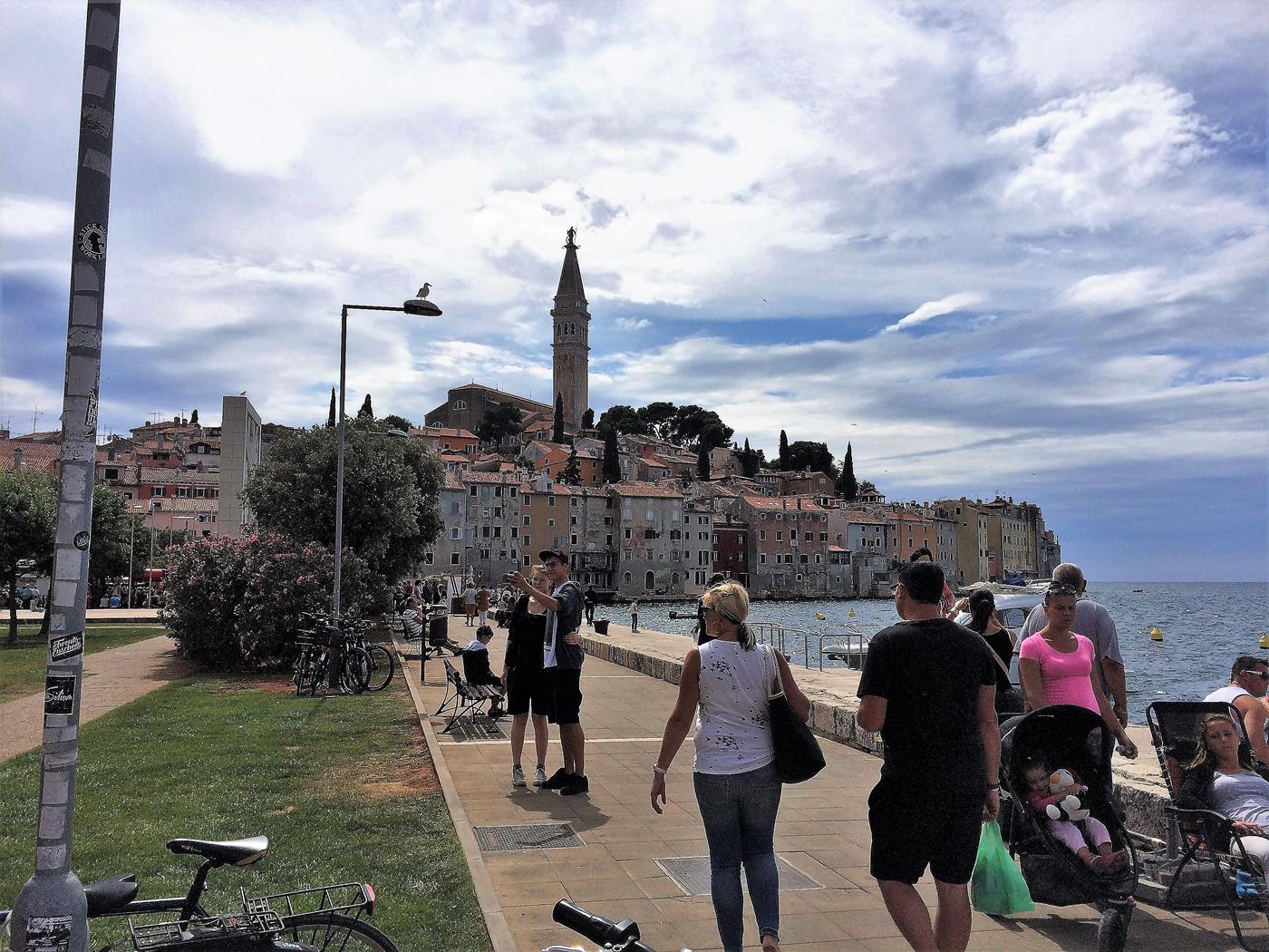 Wir haben gut geschlafen und ein sonniger Tag begrüsst uns zum Frühstück.Wir wollen um 08:20Uhr losfahren und müssen schon Gäste darum bitten uns die Parkplätze vor dem Campingplatz frei zu halten, damit wir rausmanövrieren können. Auf unserem Weg nach Rovinj, machen wir wie gewohnt noch einen Einkaufshalt beim Famila in Triest.
