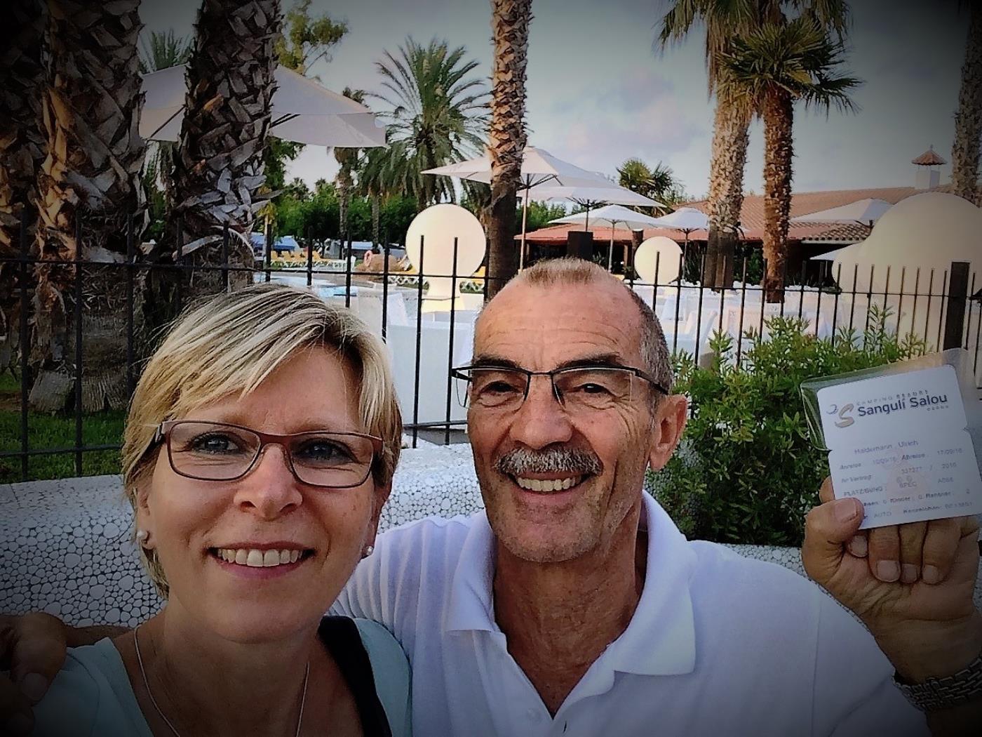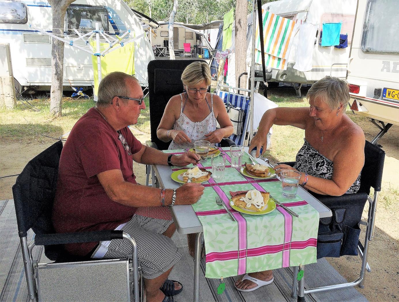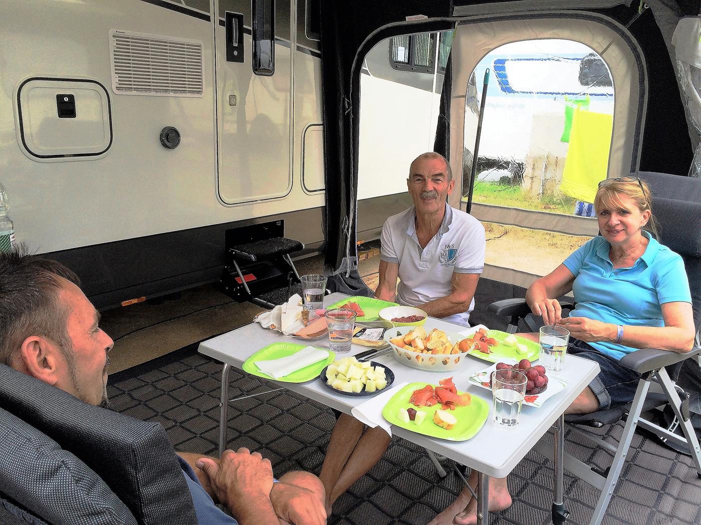 Nach dem Einkauf im Carrefour fahren wir auf den Campingplatz Sanguli wo wir gleich unseren Stammplatz A108 beziehen können. Wir treffen unsere Freunde, die schon hier sind und gehen gemeinsam Abendessen.
