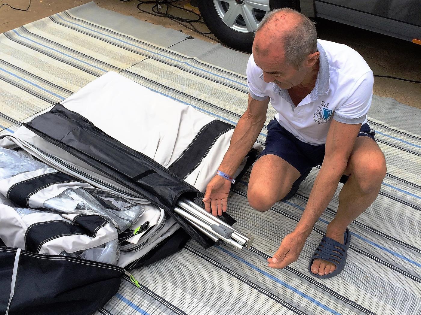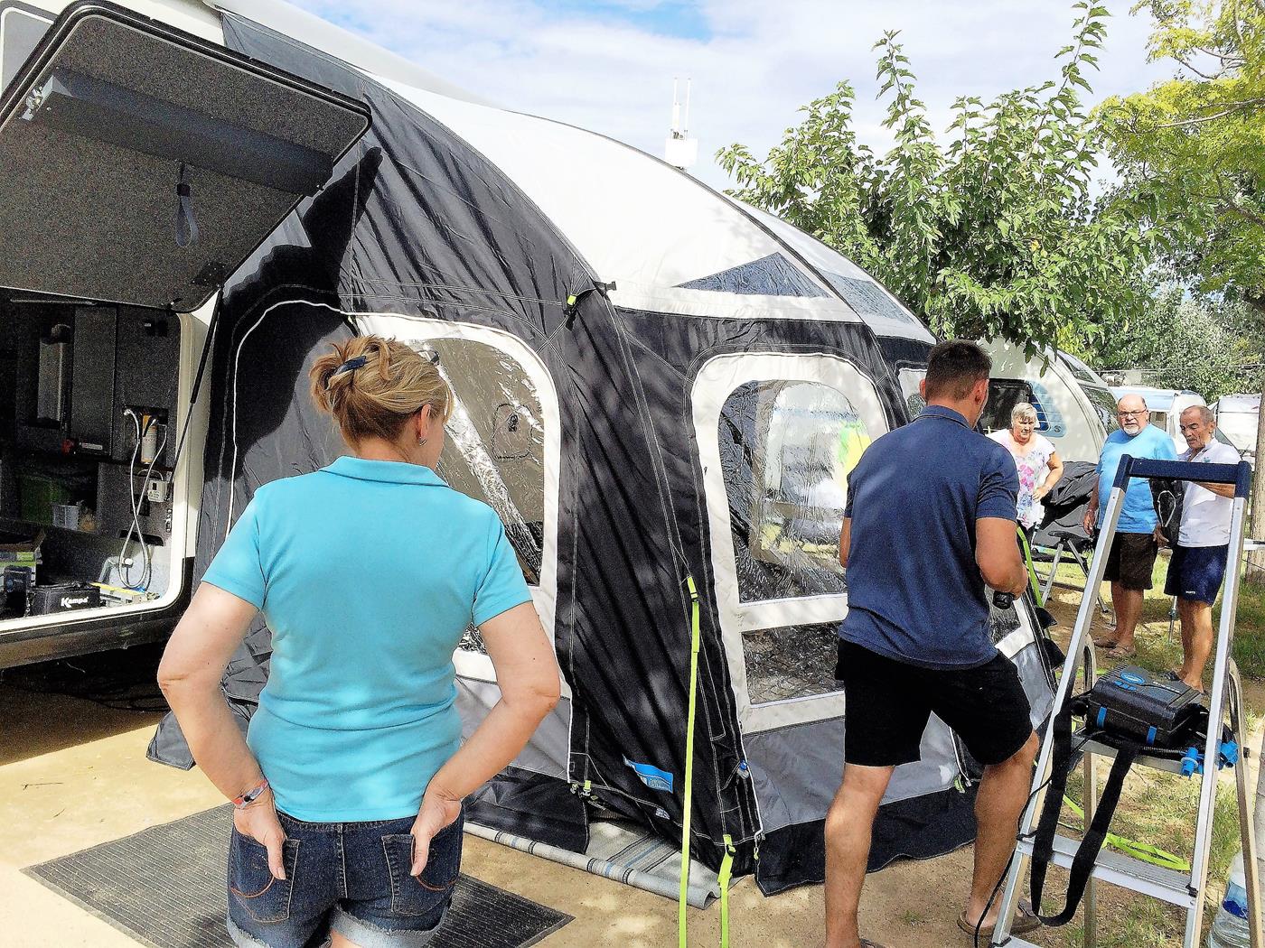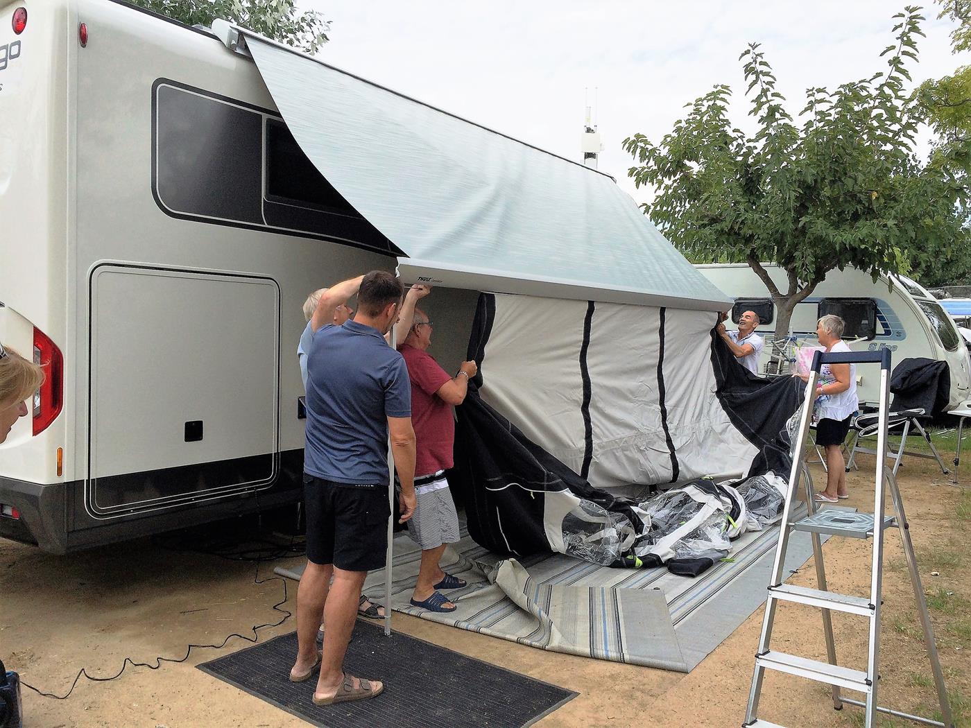 Das ist das wunderbare an der Campingszene, jeder hilft und unterstützt wo er kann und so kommen heute alle Freunde, um uns beim Aufstellen des Luftzeltes zu helfen.